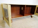 Style: Mid-Century Materials & Techniques: Parchment, wood Category: Cabinets & Case Goods Good; Wear consistent with age and use