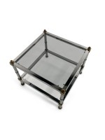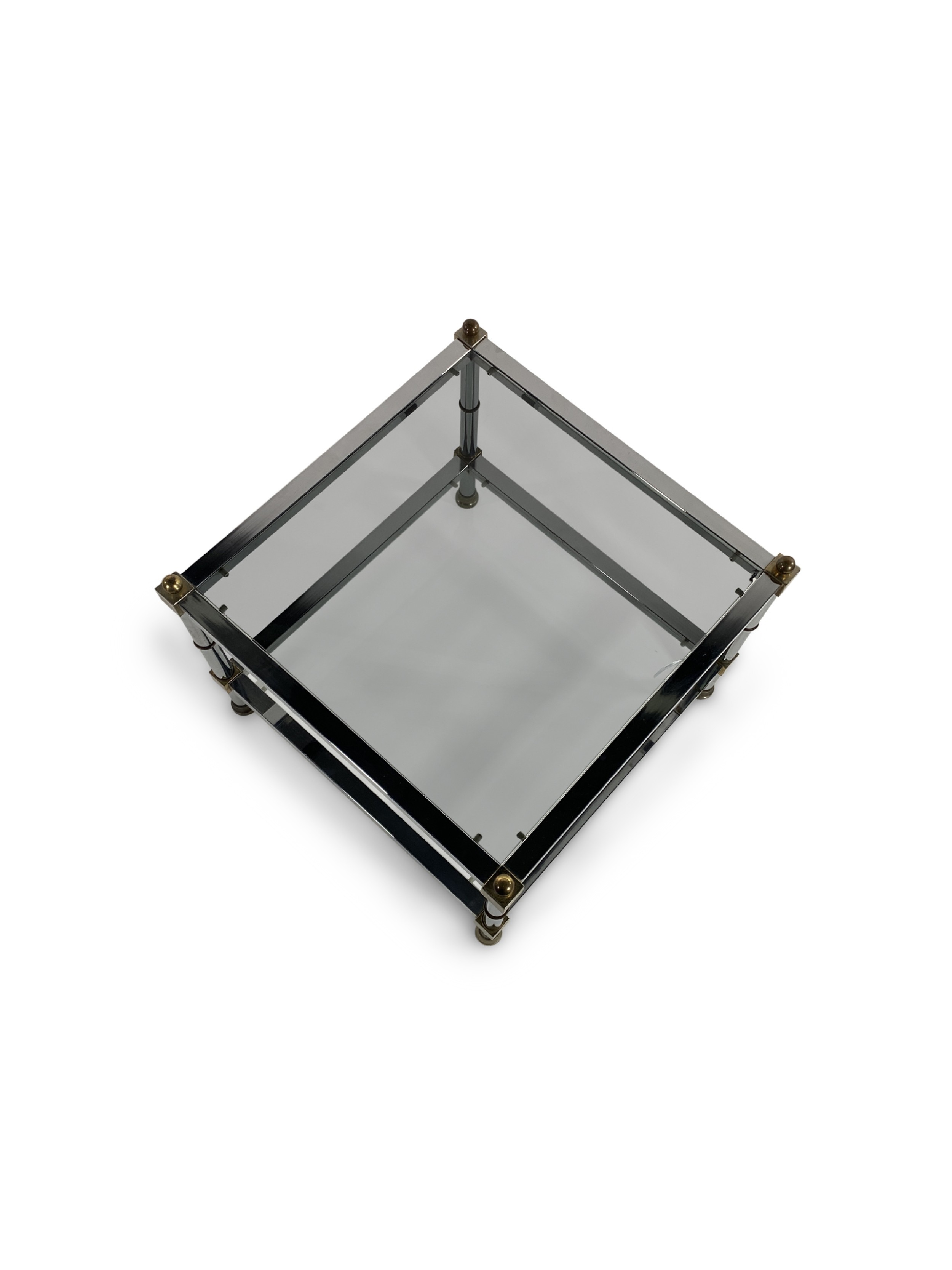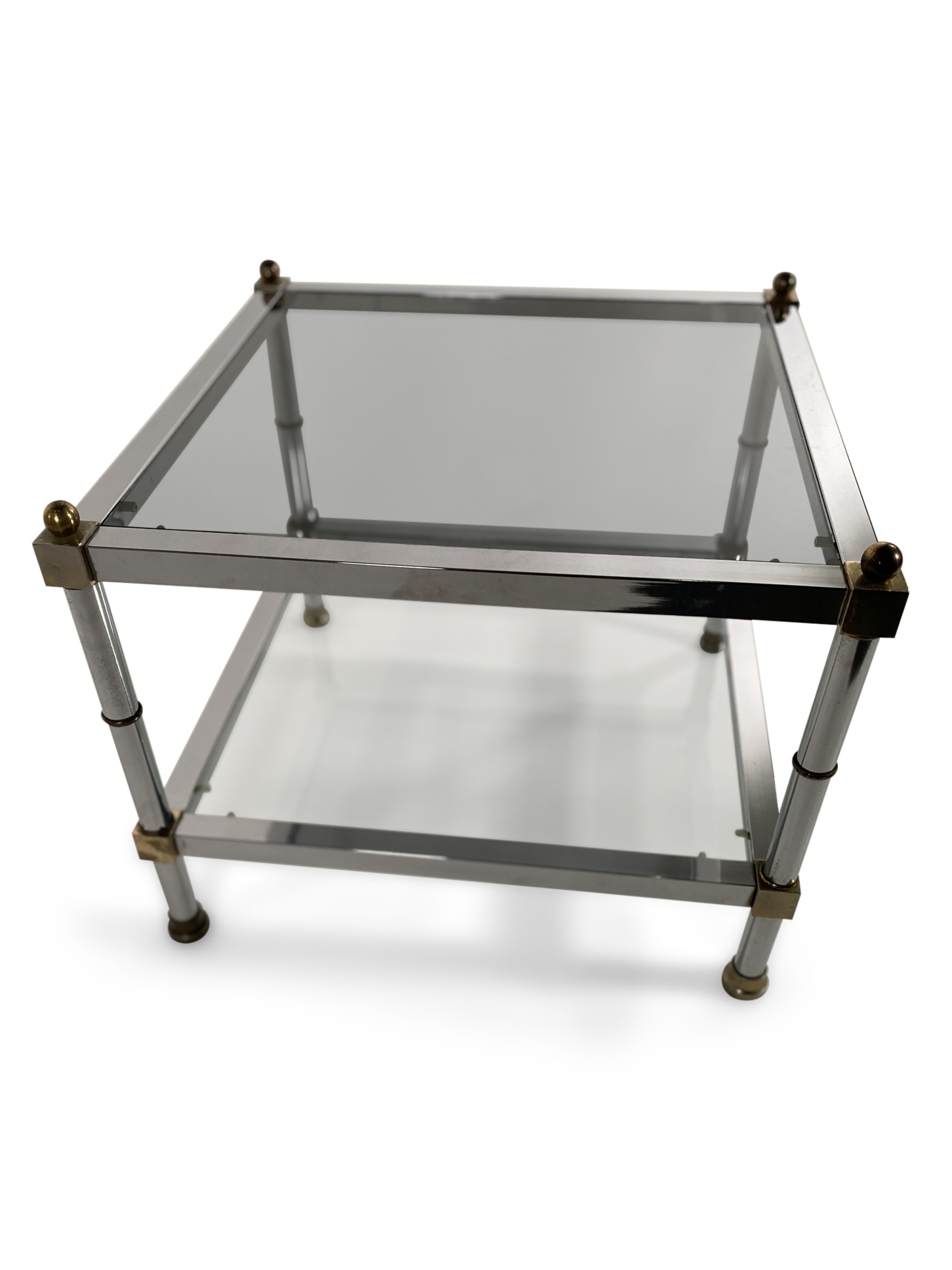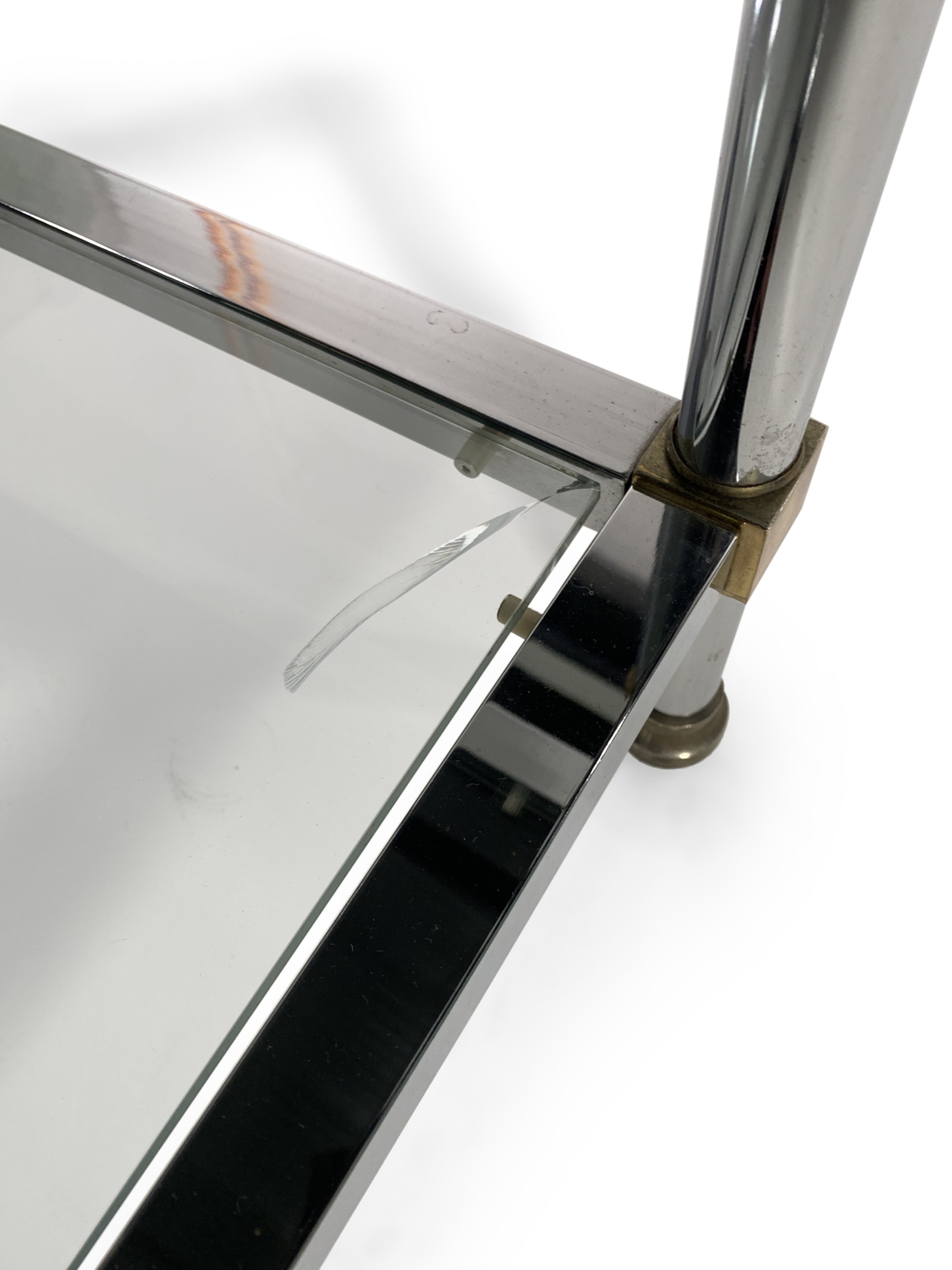 Style: Mid-Century Materials & Techniques: Brass, chrome, glass Category: Tables