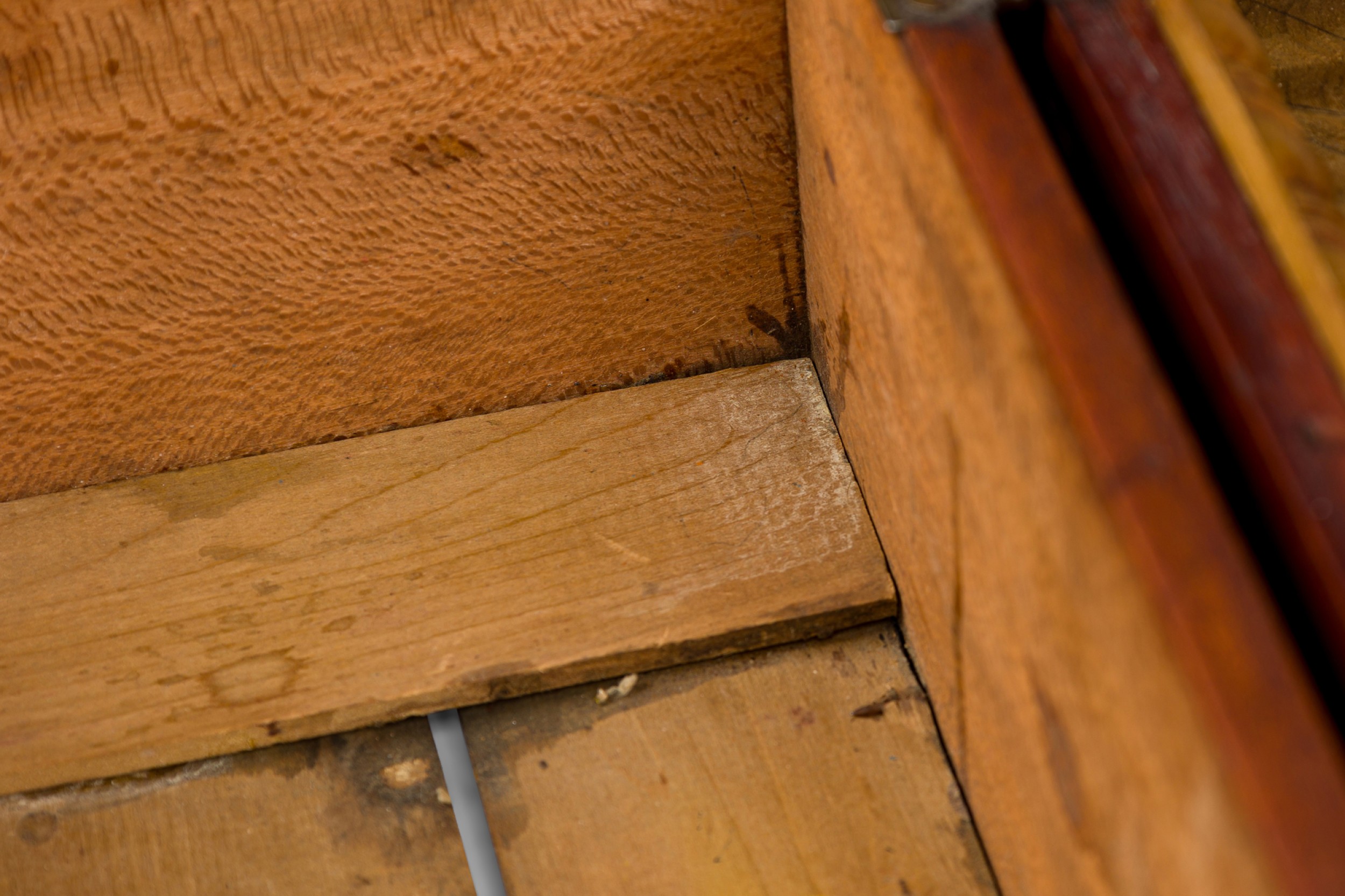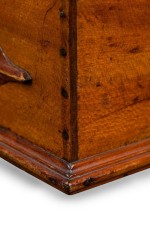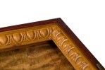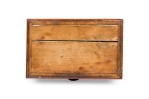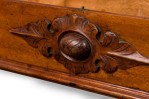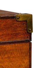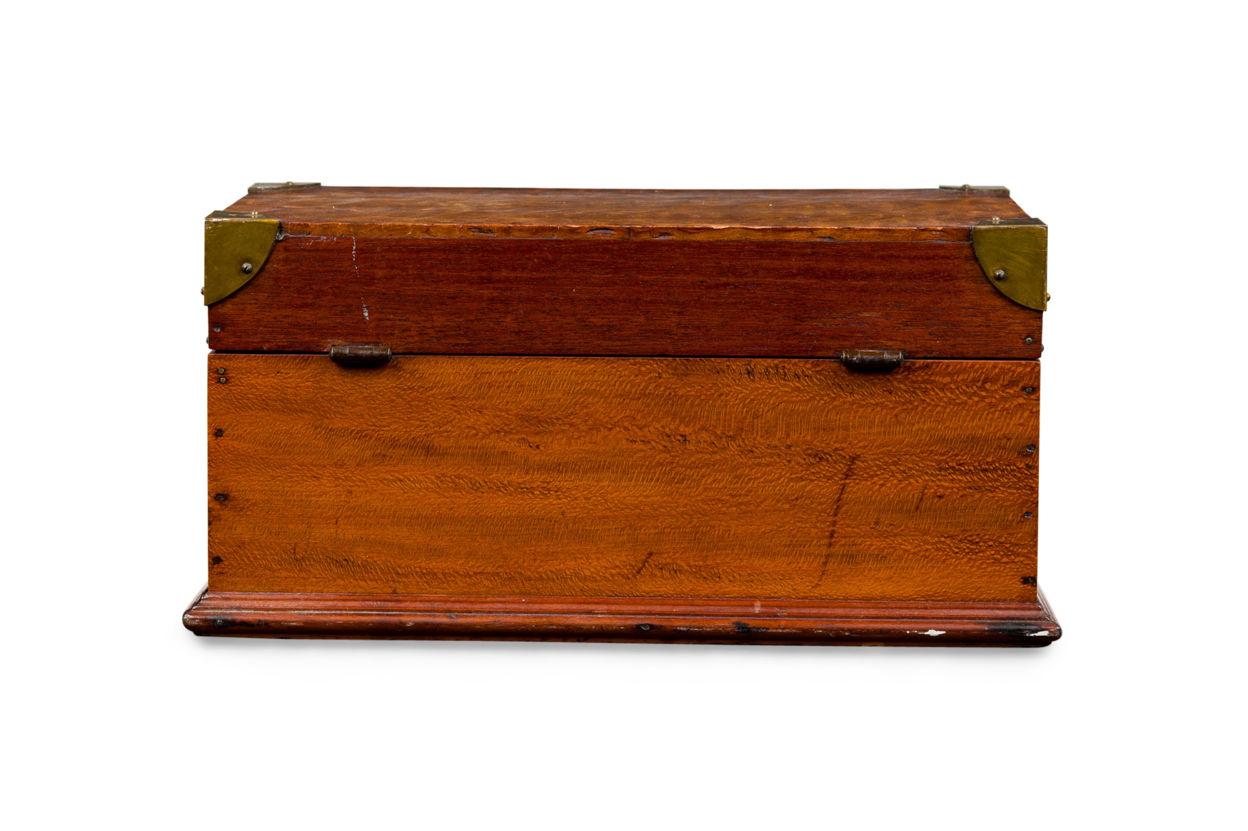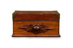 American Victorian Country style wooden box with four brass corners and a carved floral front