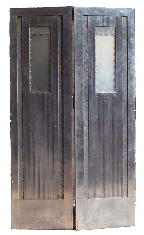4 PAIRS of American Art Deco metal (elevator) door panels with etched trim (PRICED PER PAIR)..