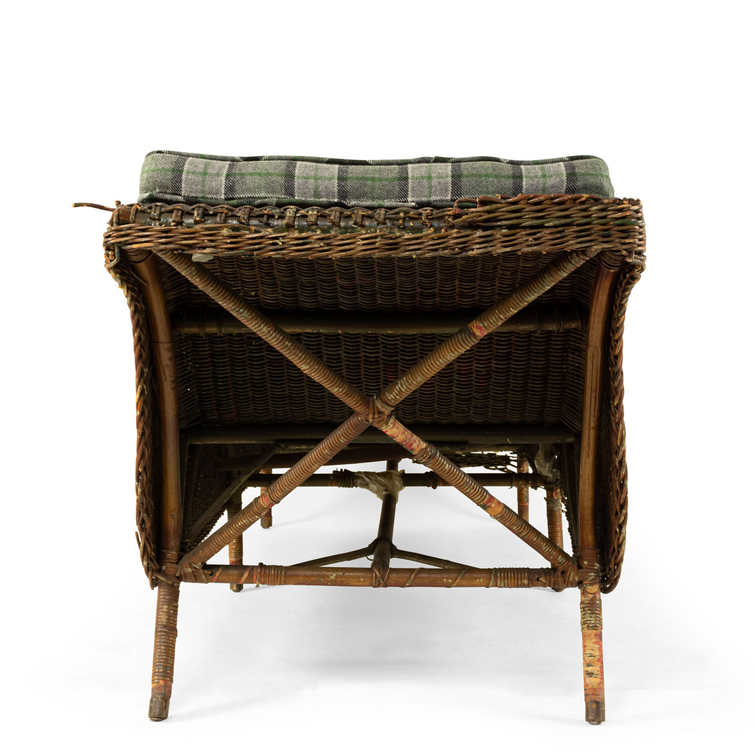 Style: Wicker Materials & Techniques: Natural, wicker Category: Seating, Wicker Condition: Damage and loss to wicker trim