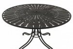 American Mid-Century (1960s) black enameled iron outdoor round dining table with a perforated top (by RUSSELL WOODARD)