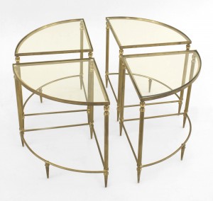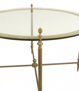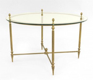 Style: Mid-Century Materials & Techniques: Brass, glass, metal Category: Tables Good; Wear consistent with age and use