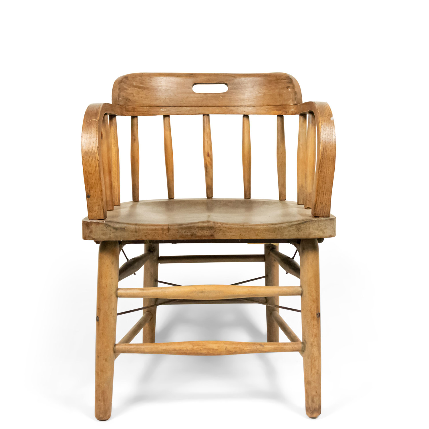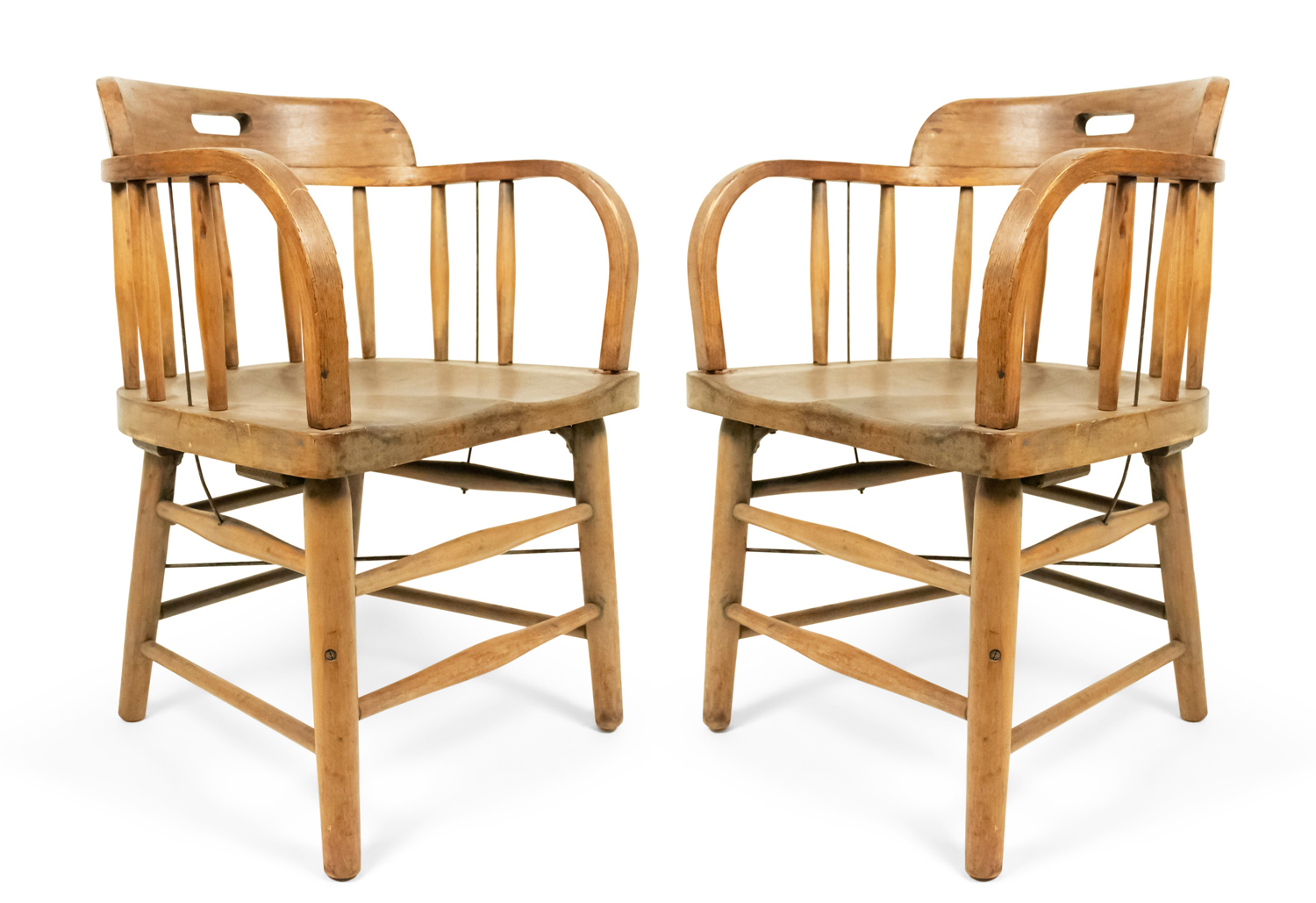 13 American (19/20th Century) oak captain's-style armchairs with spindle backs. (PRICED EACH)