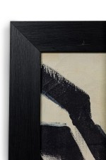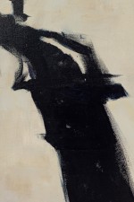 American contemporary abstract expressionism painting of a white background and black paint strokes.