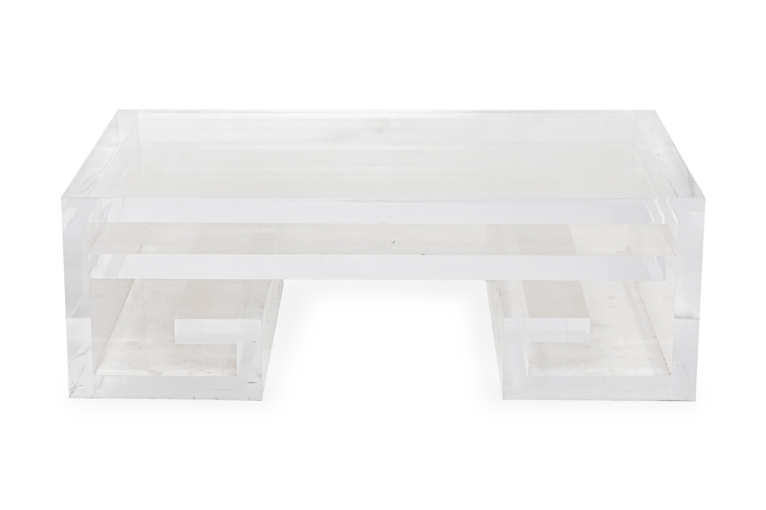 GEOFFREY BRADFIELD American Contemporary Greek Key Shaped Lucite Coffee Table