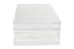 American Contemporary Lucite acrylic 2 tier coffee table in a Greek key style deisgn (designed by GEOFFREY BRADFIELD).