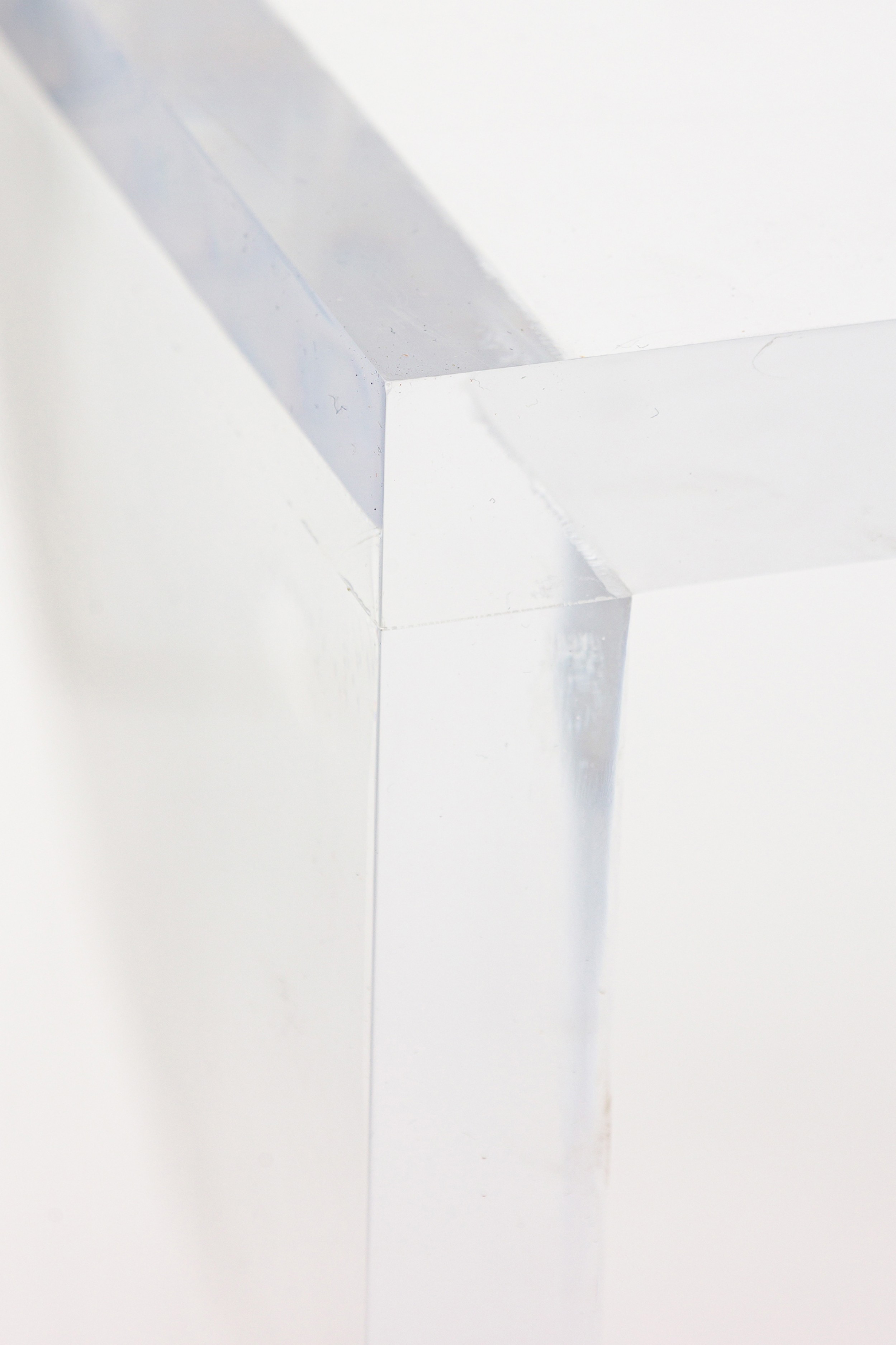 American Contemporary rectangular console table with a solid acrylic design (designed by GEOFFREY BRADFIELD).