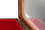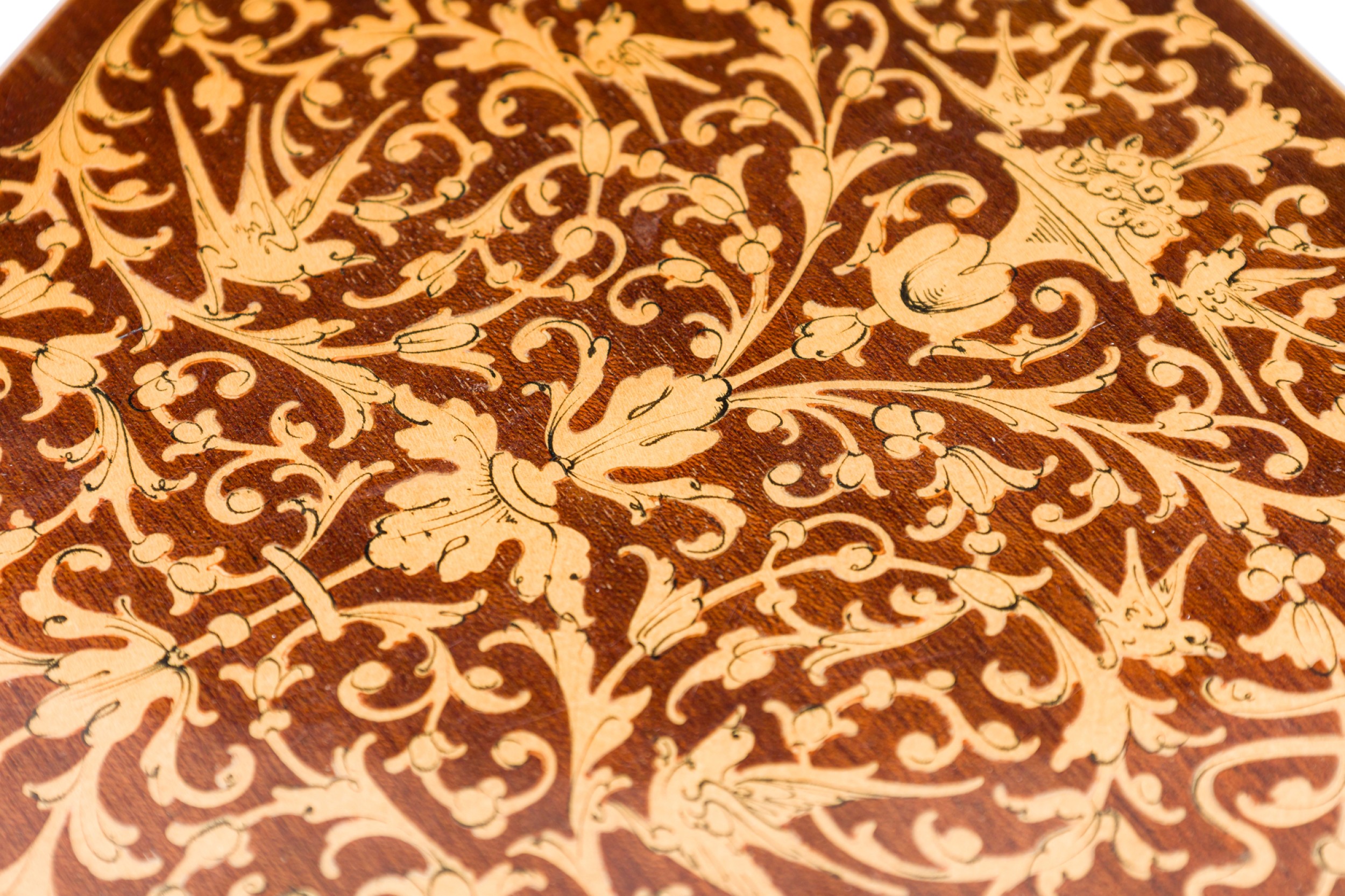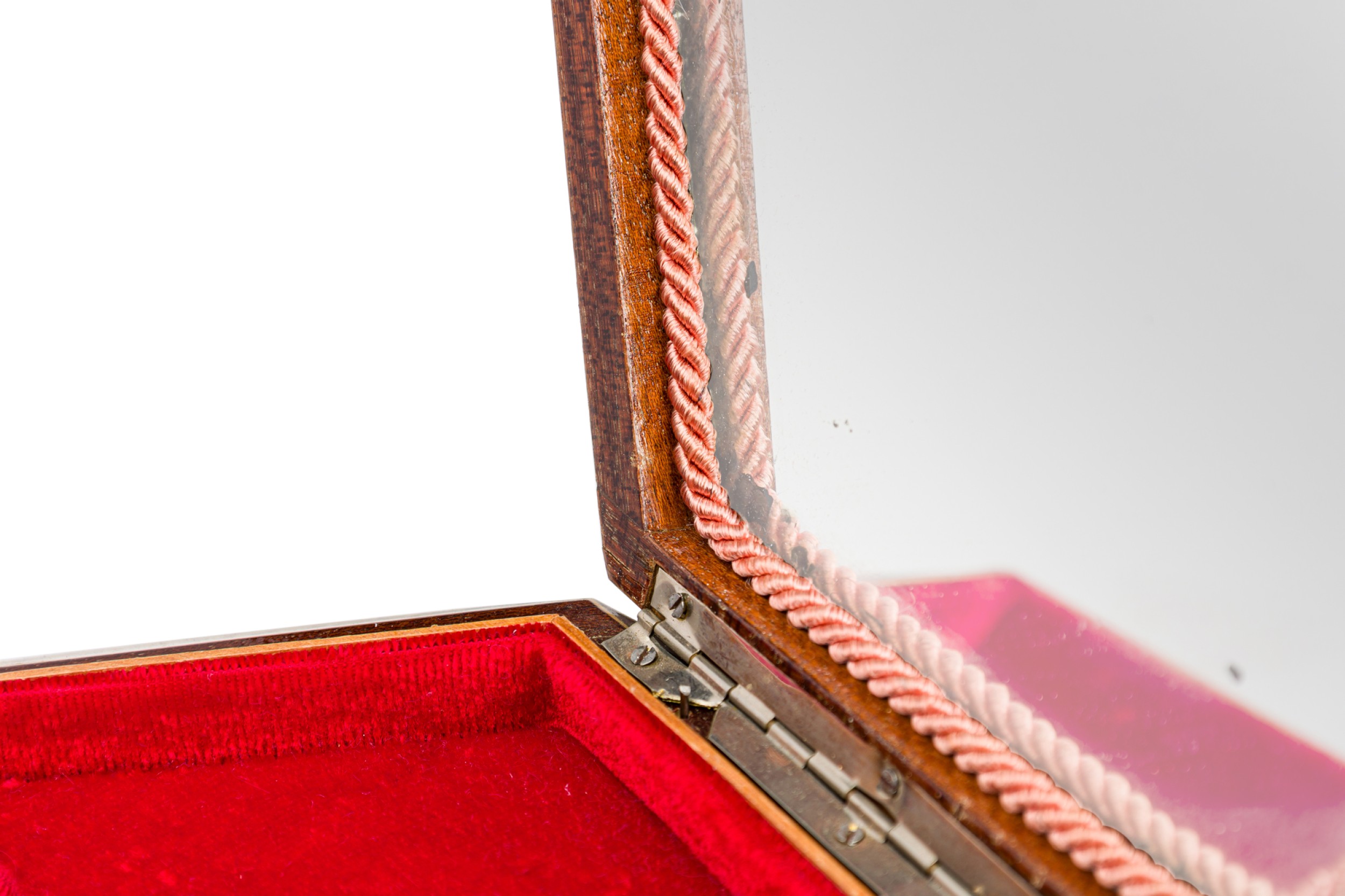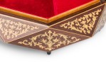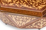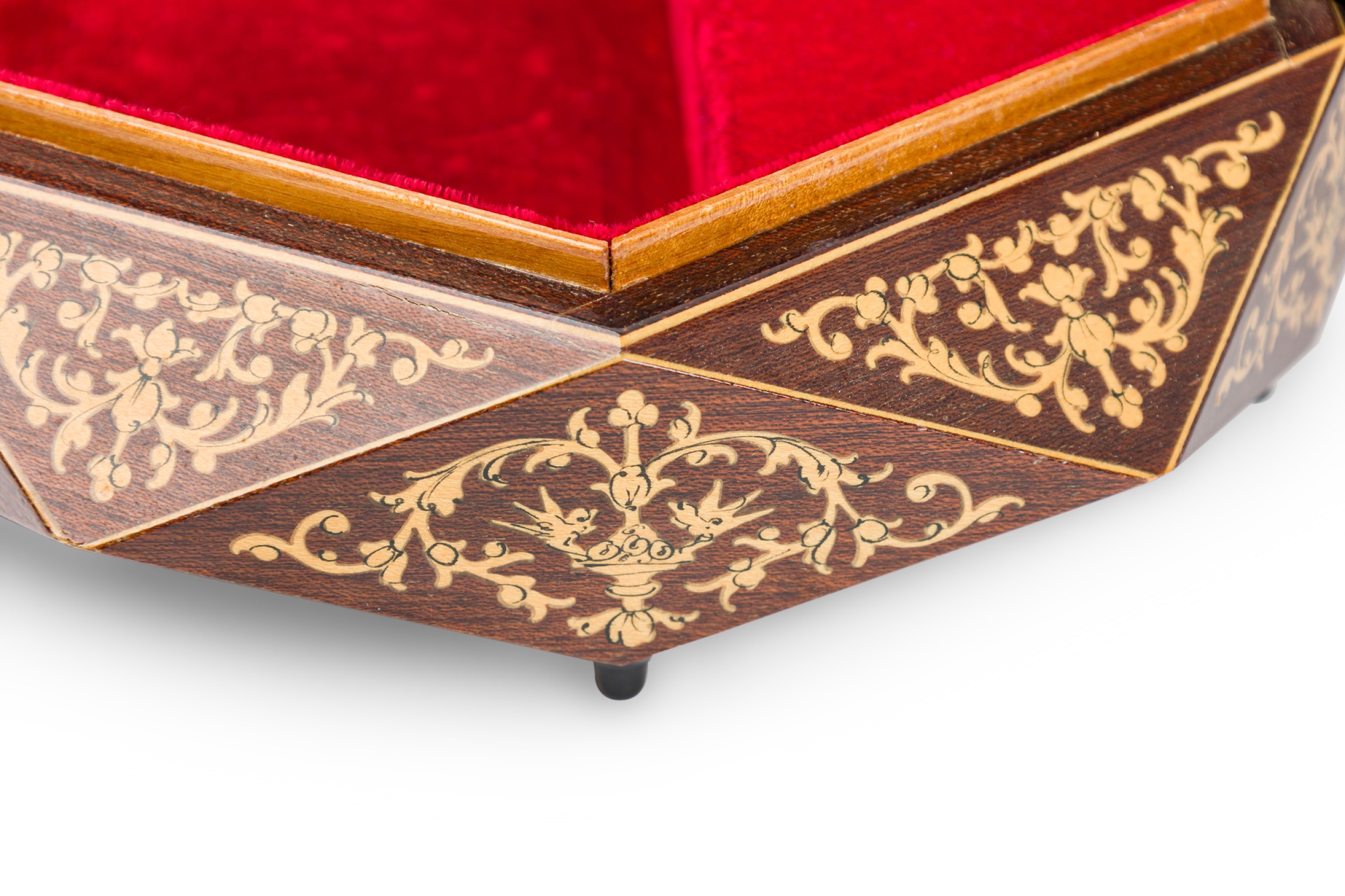 American Contemporary beige and brown inlaid wood hexagonal geometric jewelry box