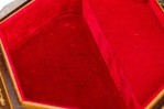 American Contemporary beige and brown inlaid wood hexagonal geometric jewelry box.