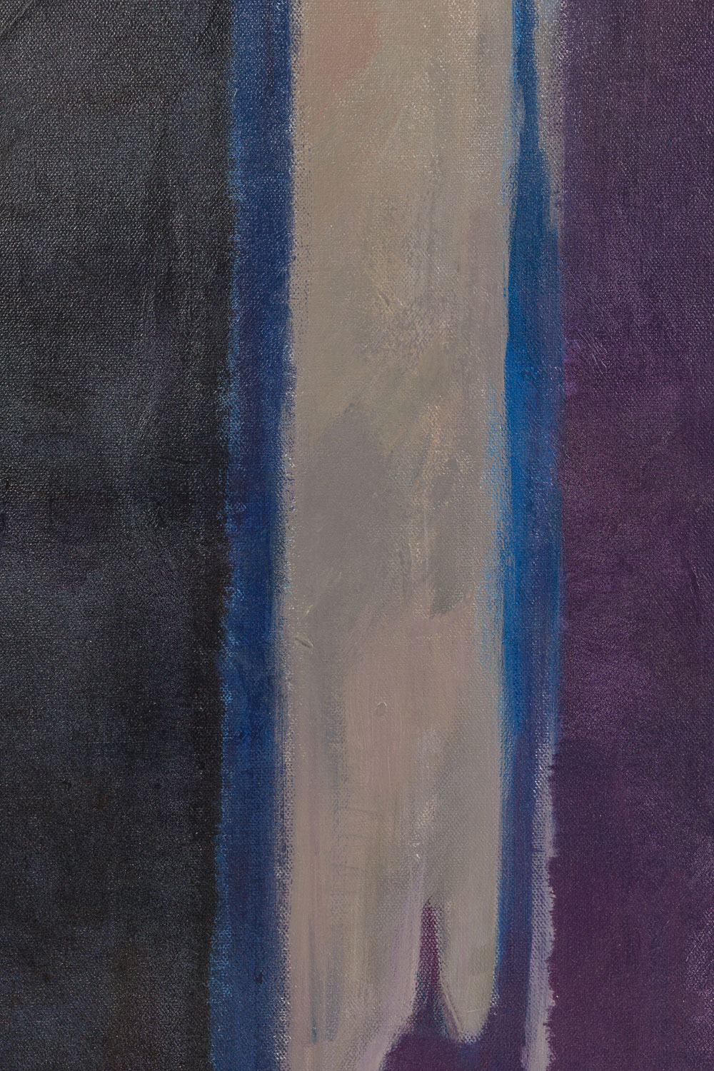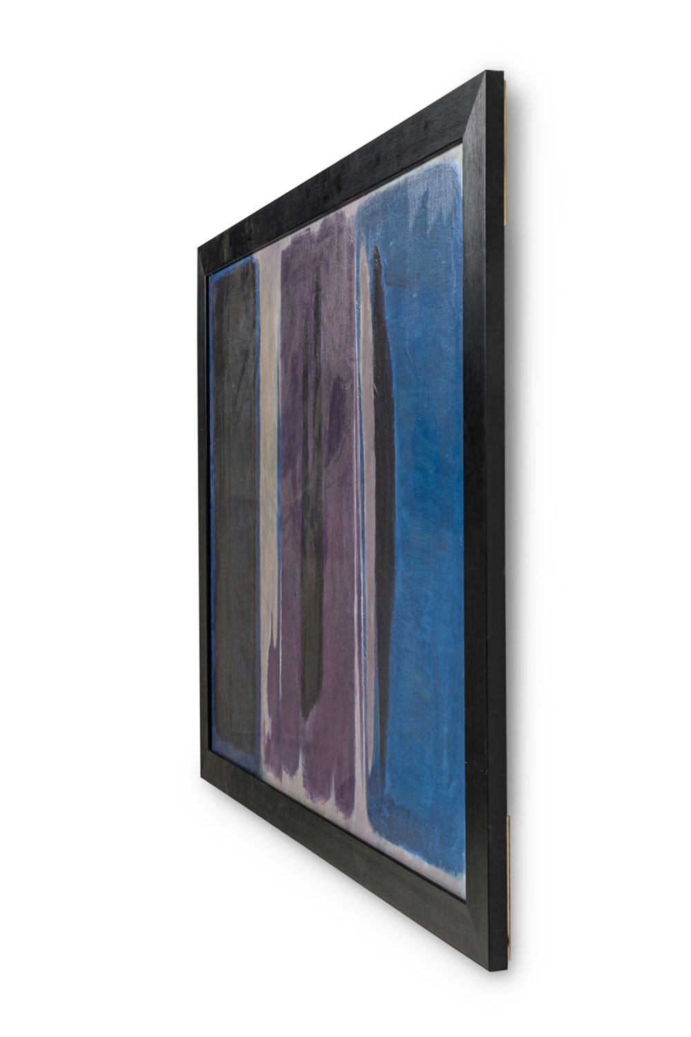 American contemporary copy of a abstract painting featuring black blue and purple rectangles.