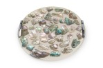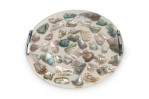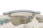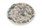 American Contemporary lucite tray adorned with inlaid iridescent abalones