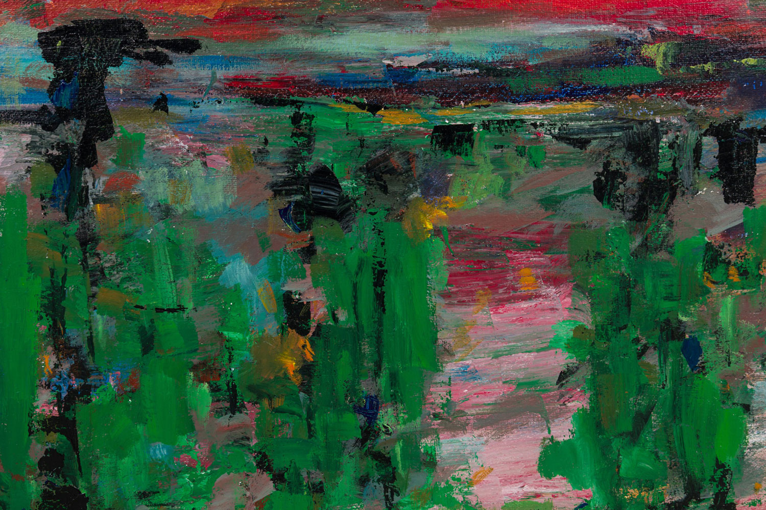 American Contemporary Red and Green Abstract Acrylic on Canvas