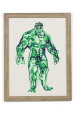 American Contemporary superhero poster of green smoke in the silhouette of Superman in a cerused oak frame (similar superhero figures NWL7053-7057).