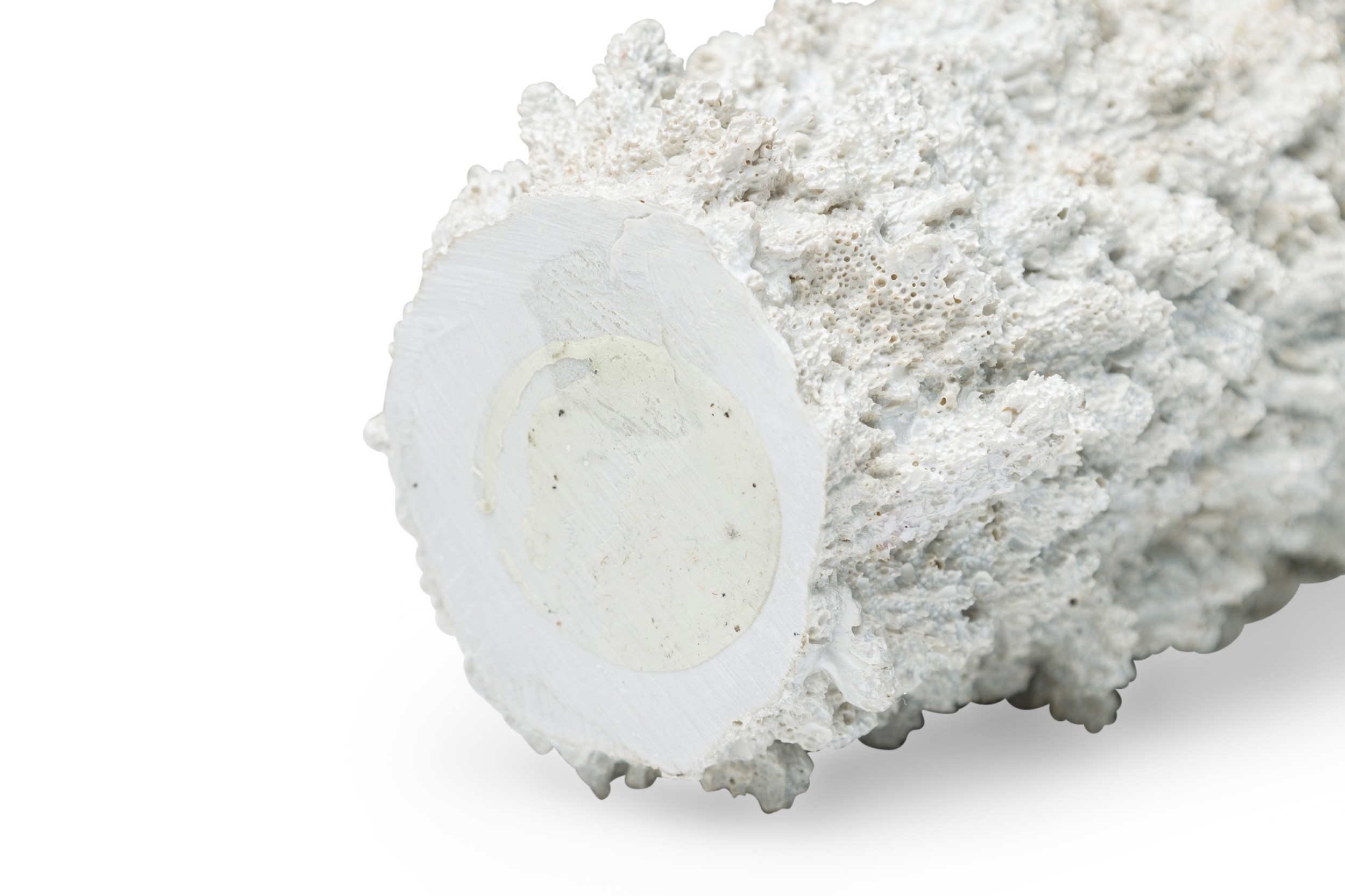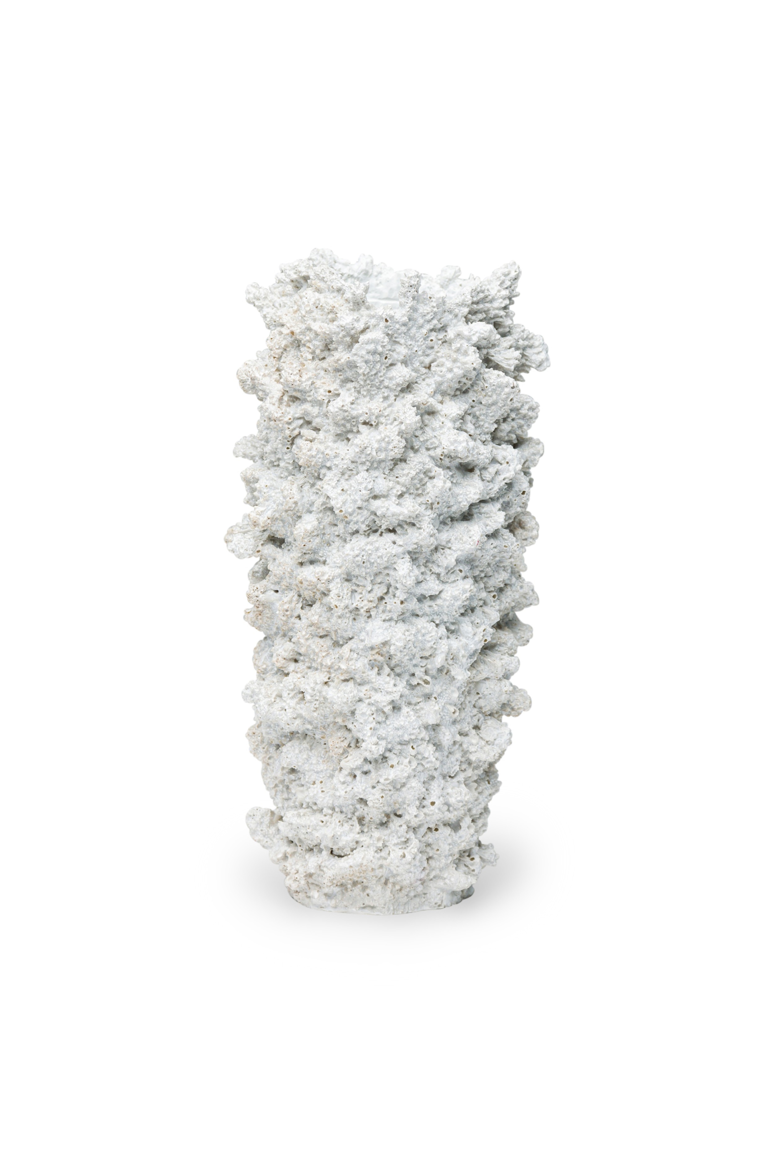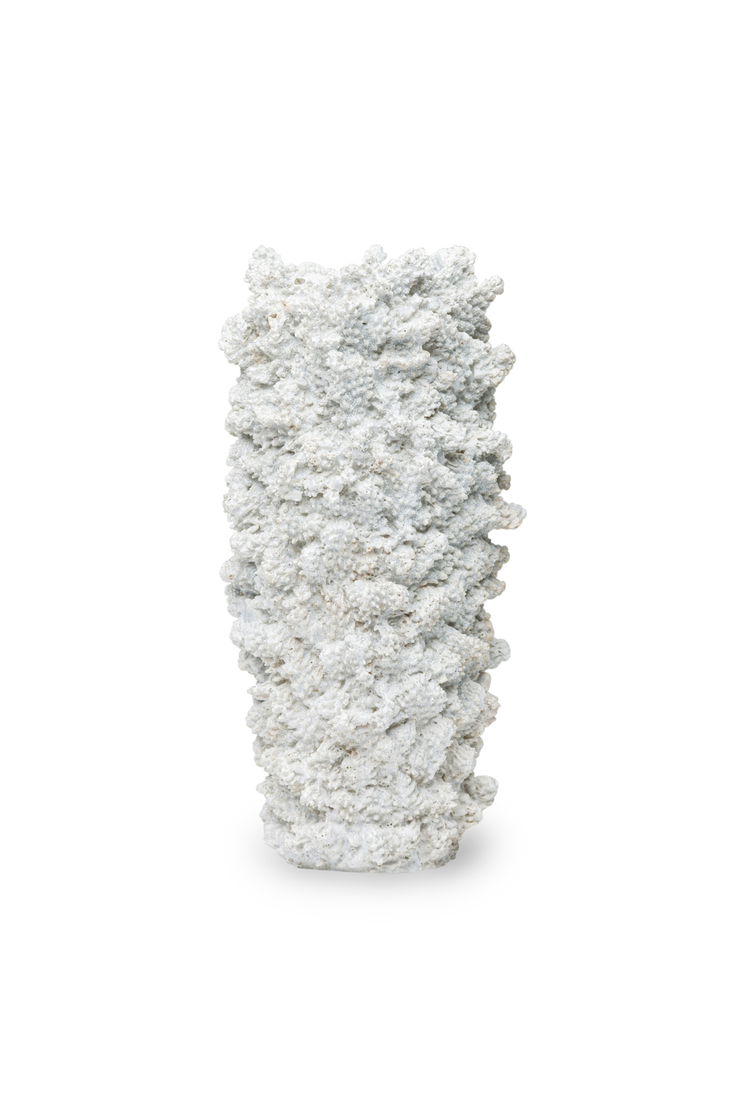 American Mid-Century White Coral form ceramic vase featuring a slender body with a rich coral-like texture