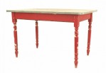 American Country Rustic-style (19th Century) rectangular red painted work table with a zinc top and turned legs.