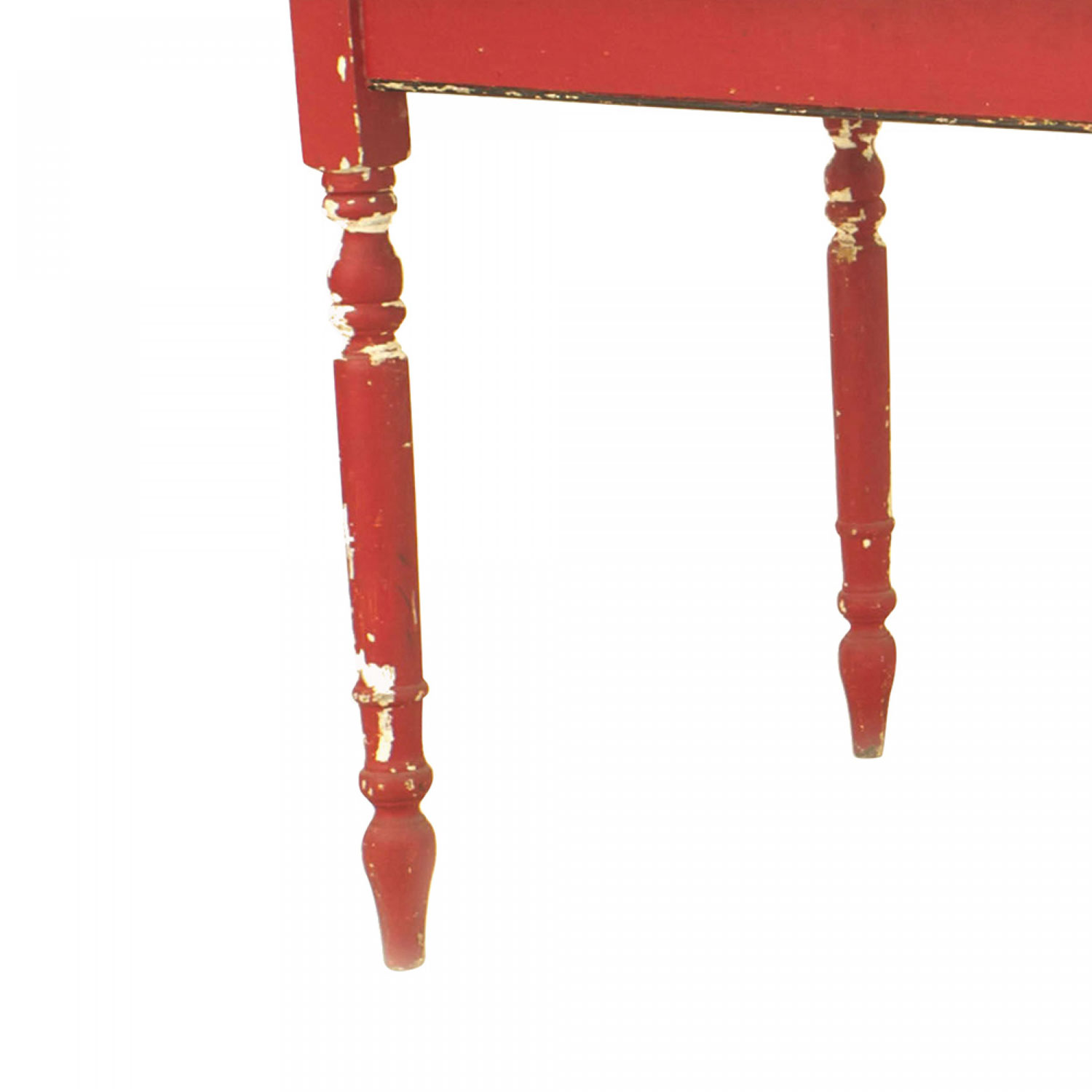 American Country Rustic-style (19th Century) rectangular red painted work table with a zinc top and turned legs..