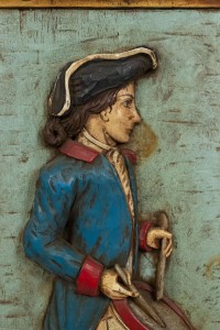 American Country style (20th Century) carved and painted wall plaque of Revolutionary soldier with drum. (Related Item: 036345D).