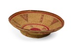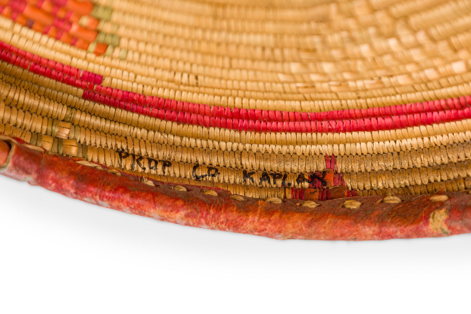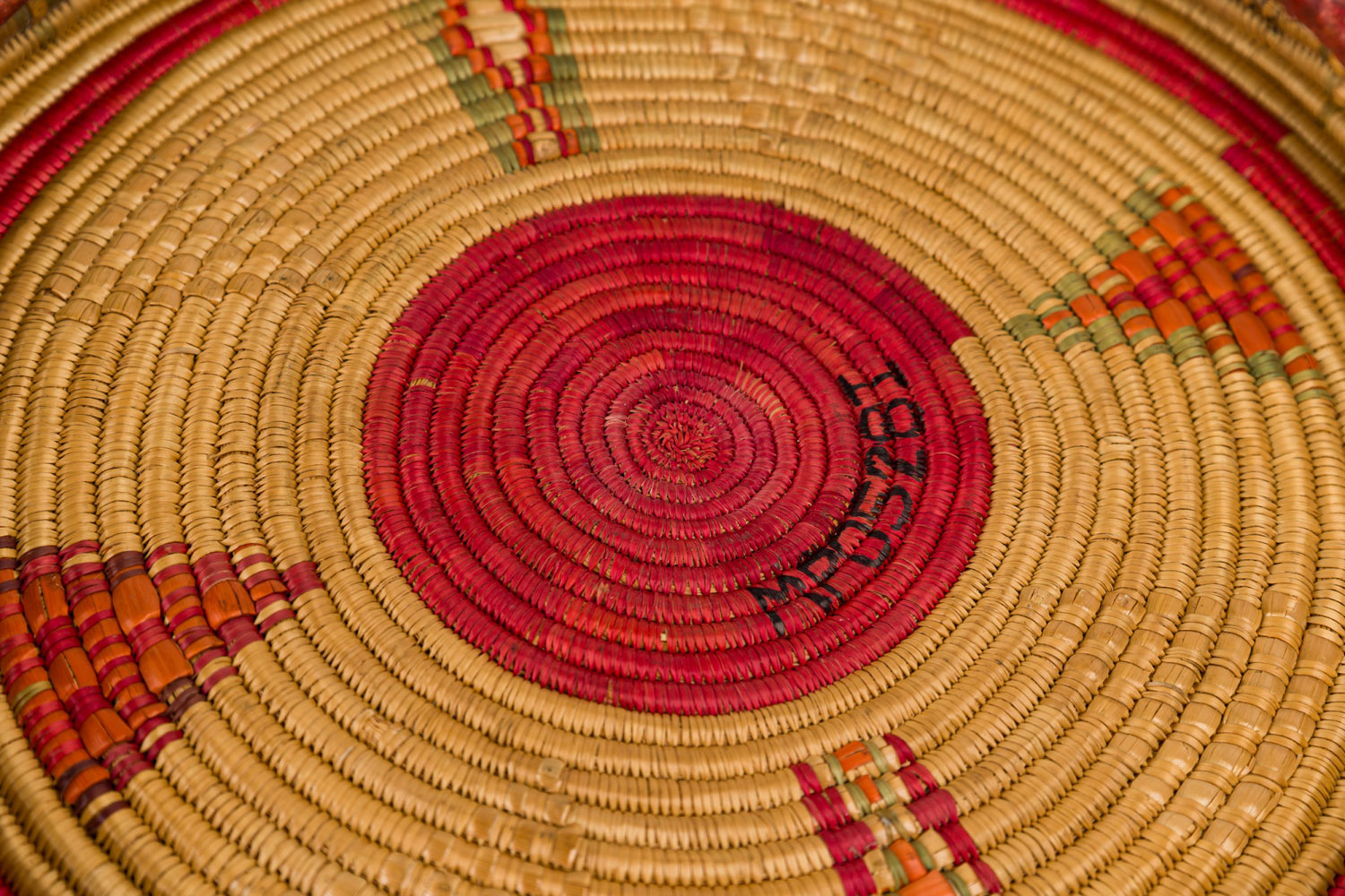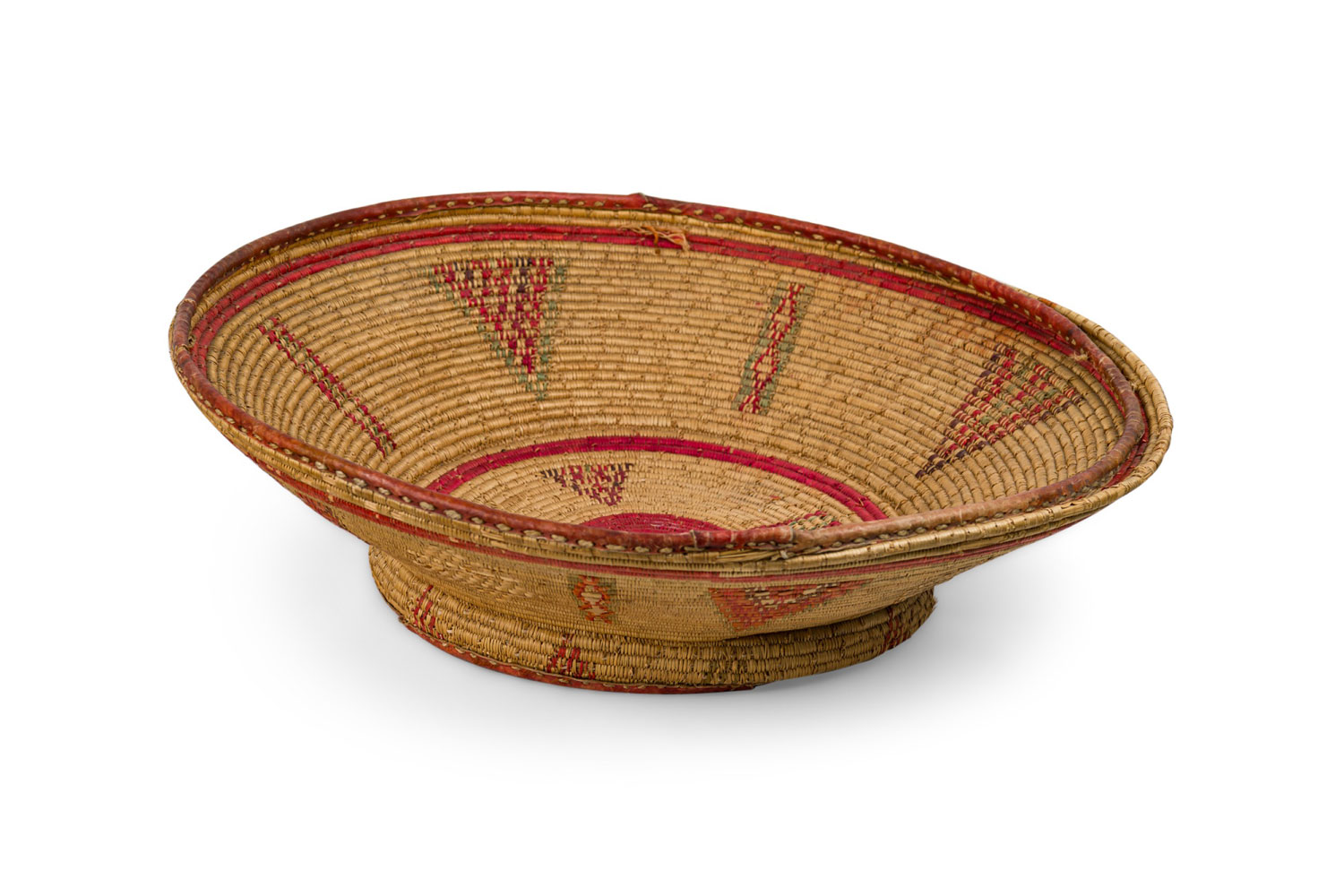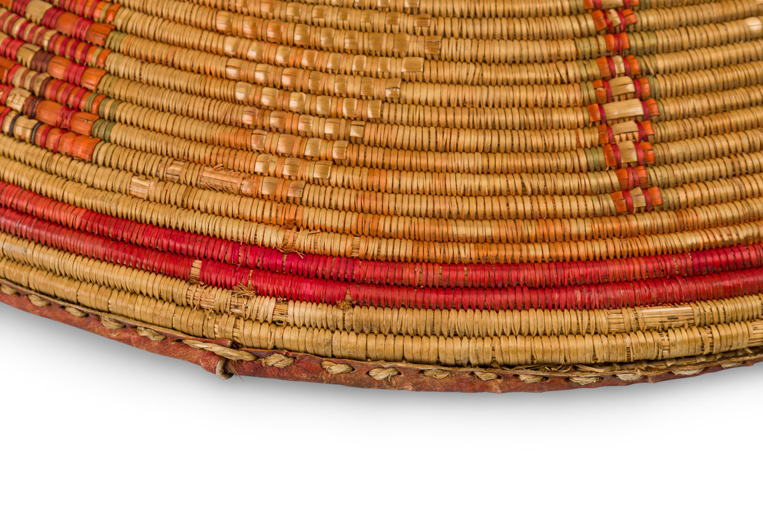 American Country Native American style large coil woven bowl with red and natural colors (AS IS).