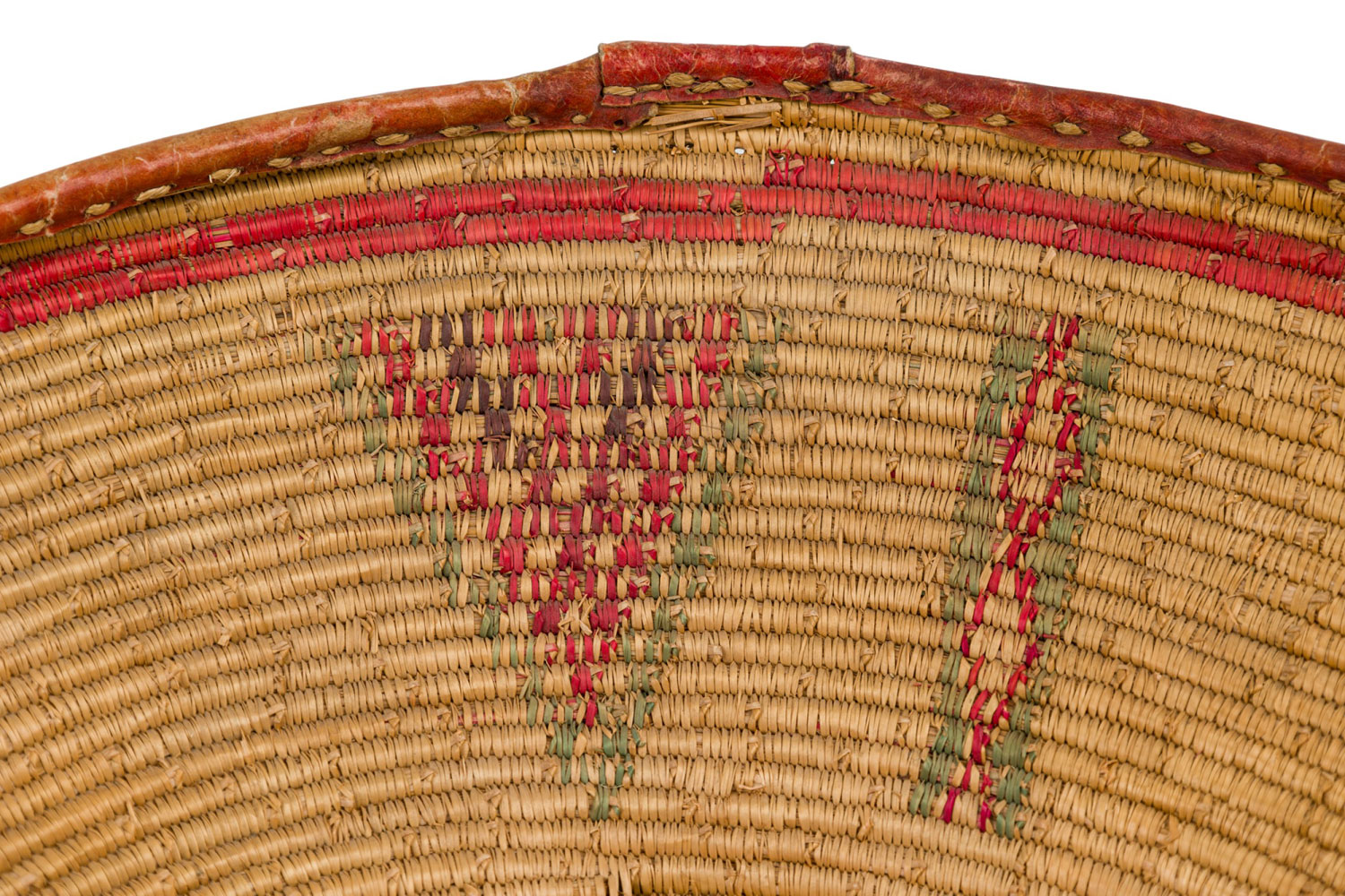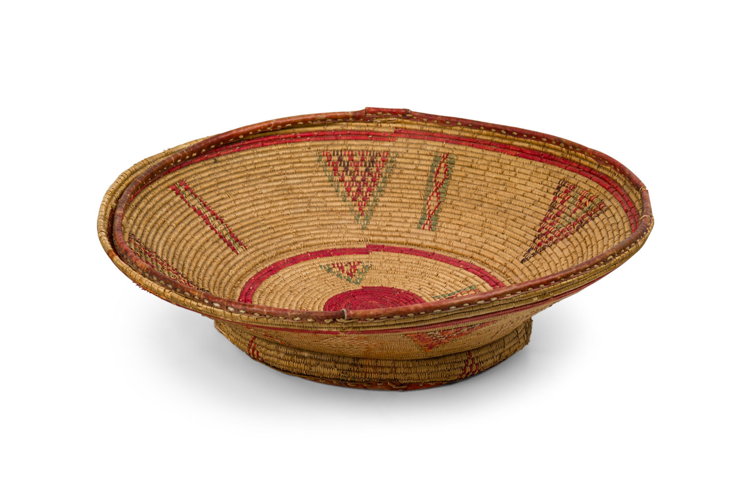 American Country Native American style large coil woven bowl with red and natural colors (AS IS)