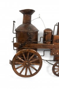 American Country style (20th Century) copper wall plaque of 2 wheel steam engine..