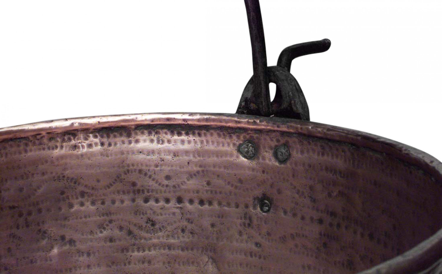 American Country-style (19th Century) copper cauldron with wrought iron handle.