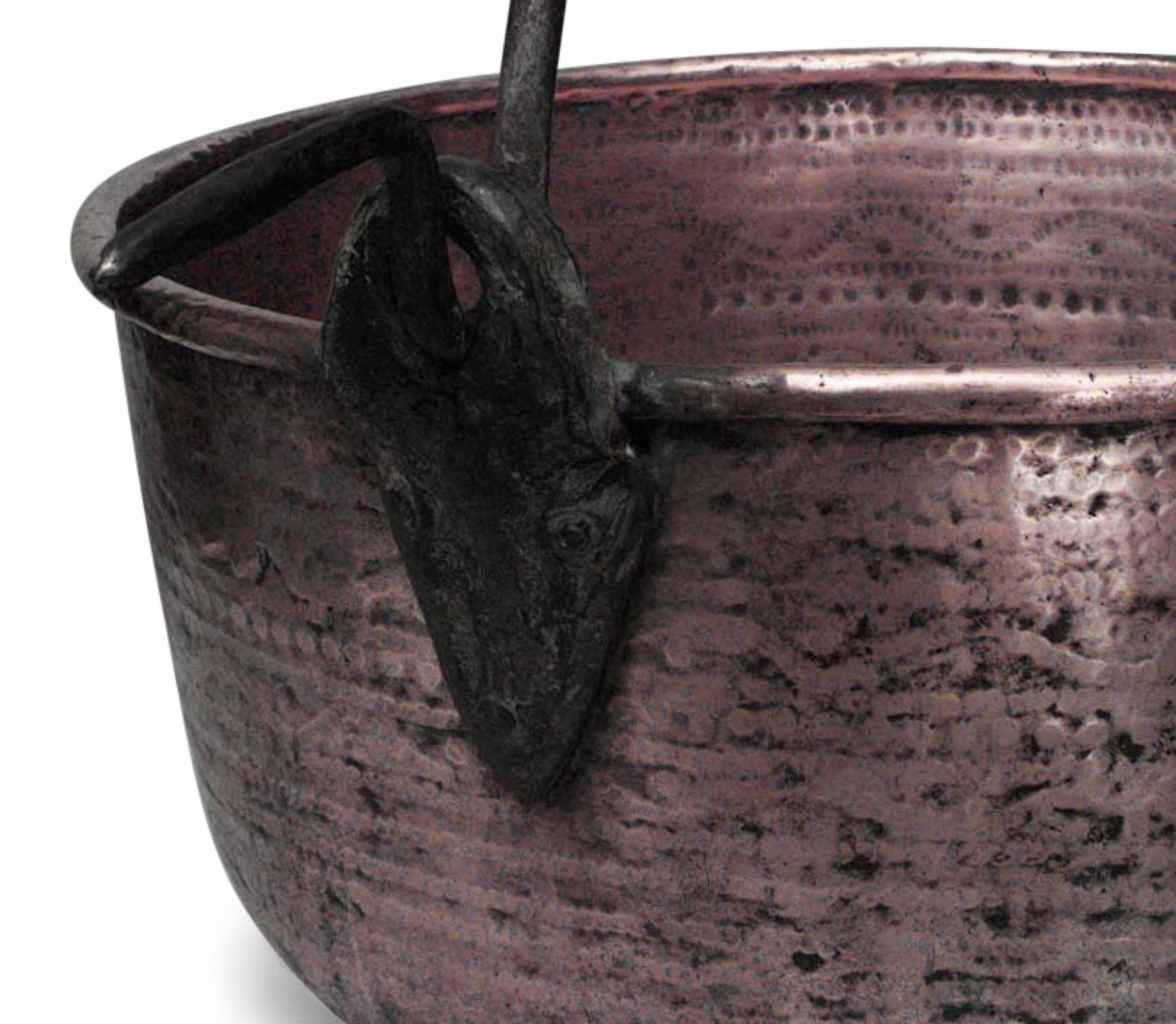 American Country-style (19th Century) copper cauldron with wrought iron handle..