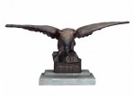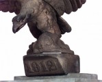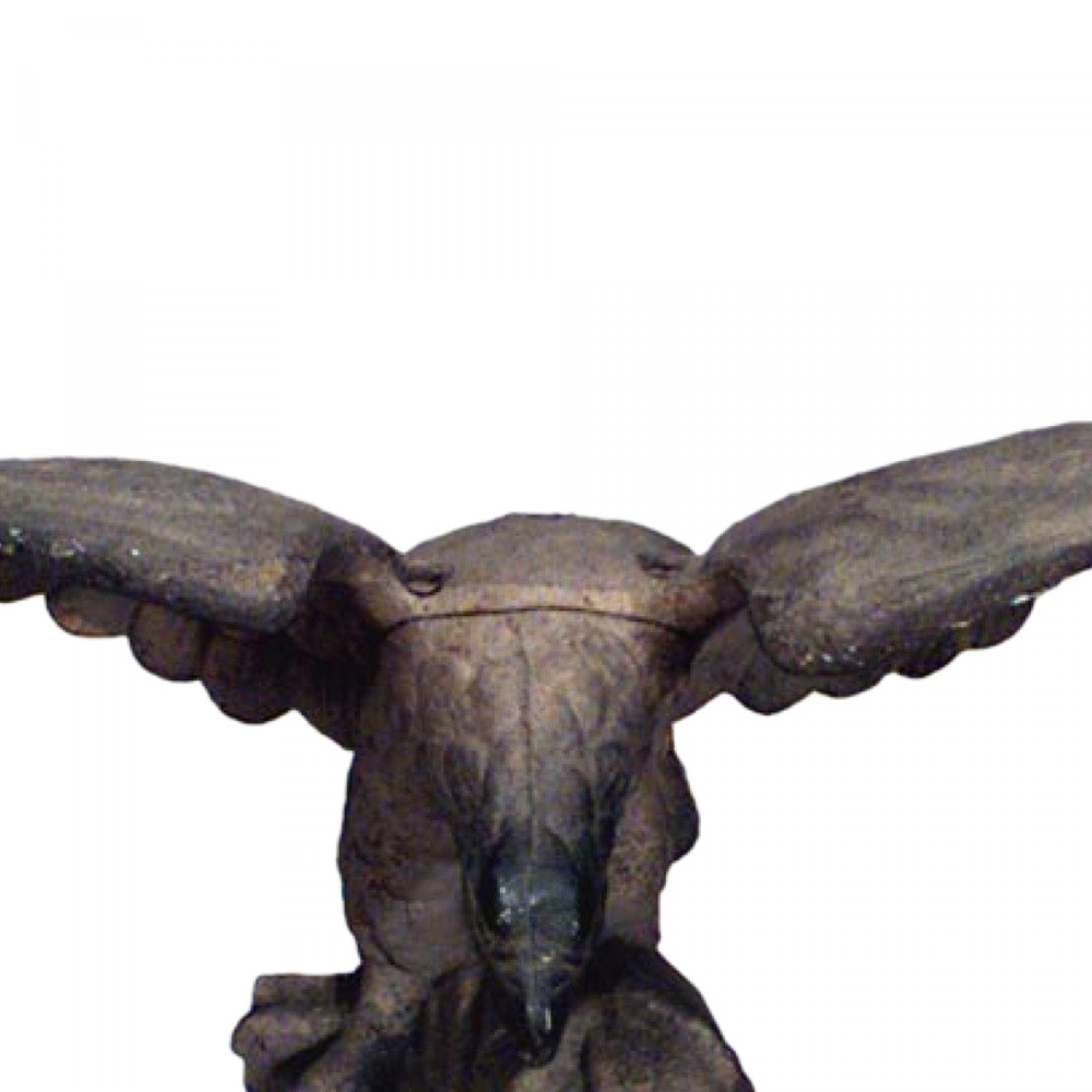 American Country style painted iron eagle figure with spread wings perched on gray painted wood base (with date 1912)