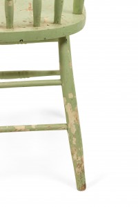 3 American Country style (19/20th Cent) antique green painted side chairs with a spindles and a hoop design back having a double stretcher. (PRICED EACH)