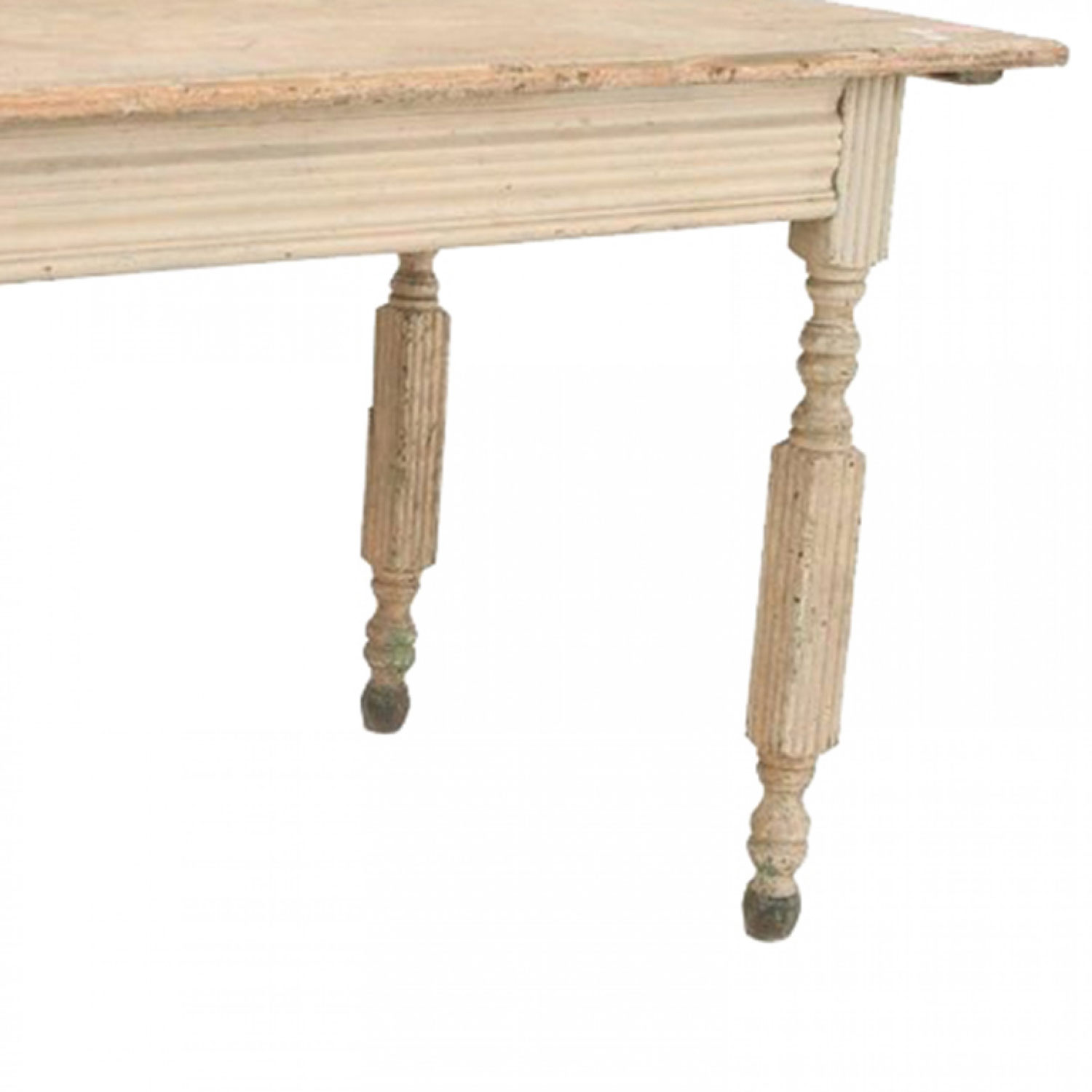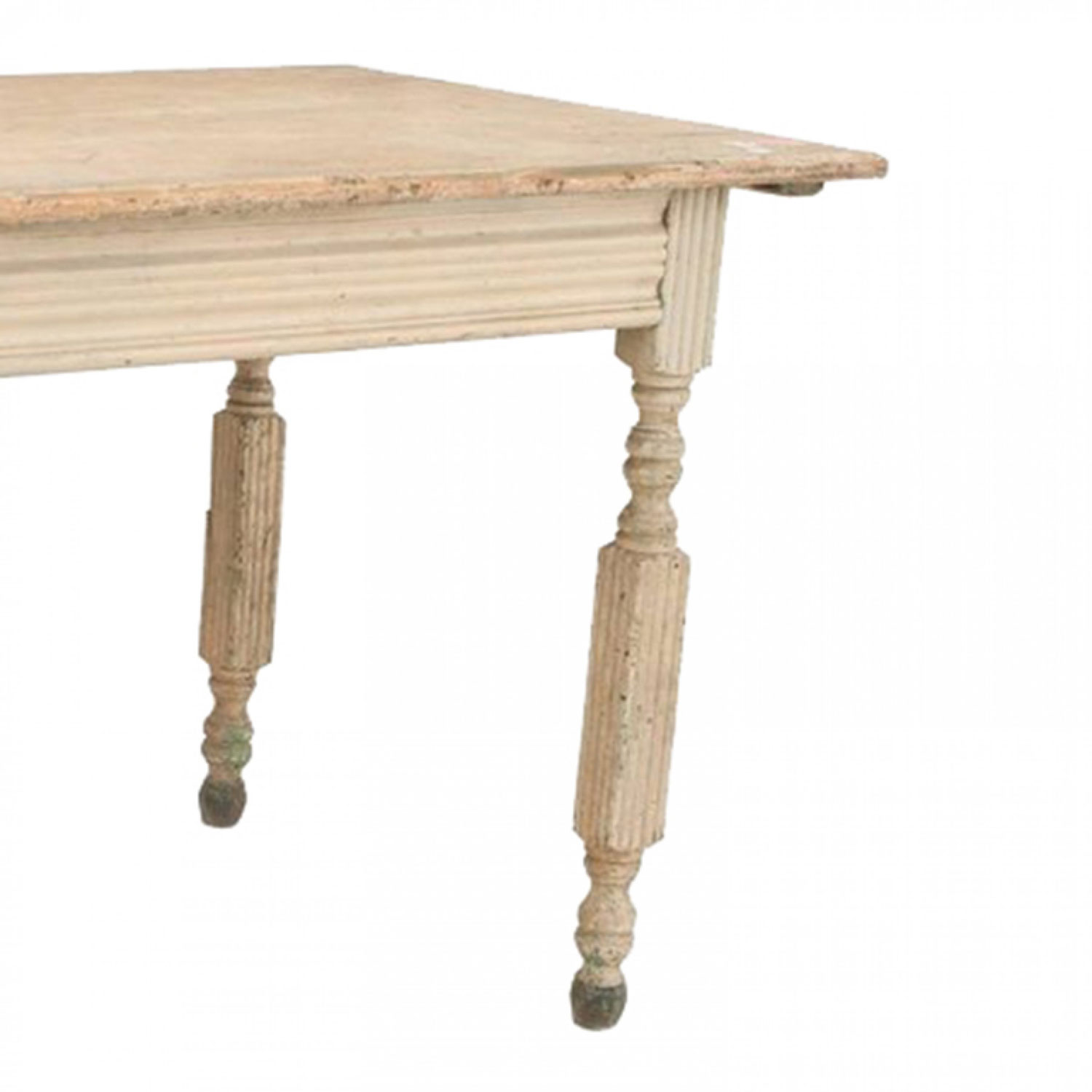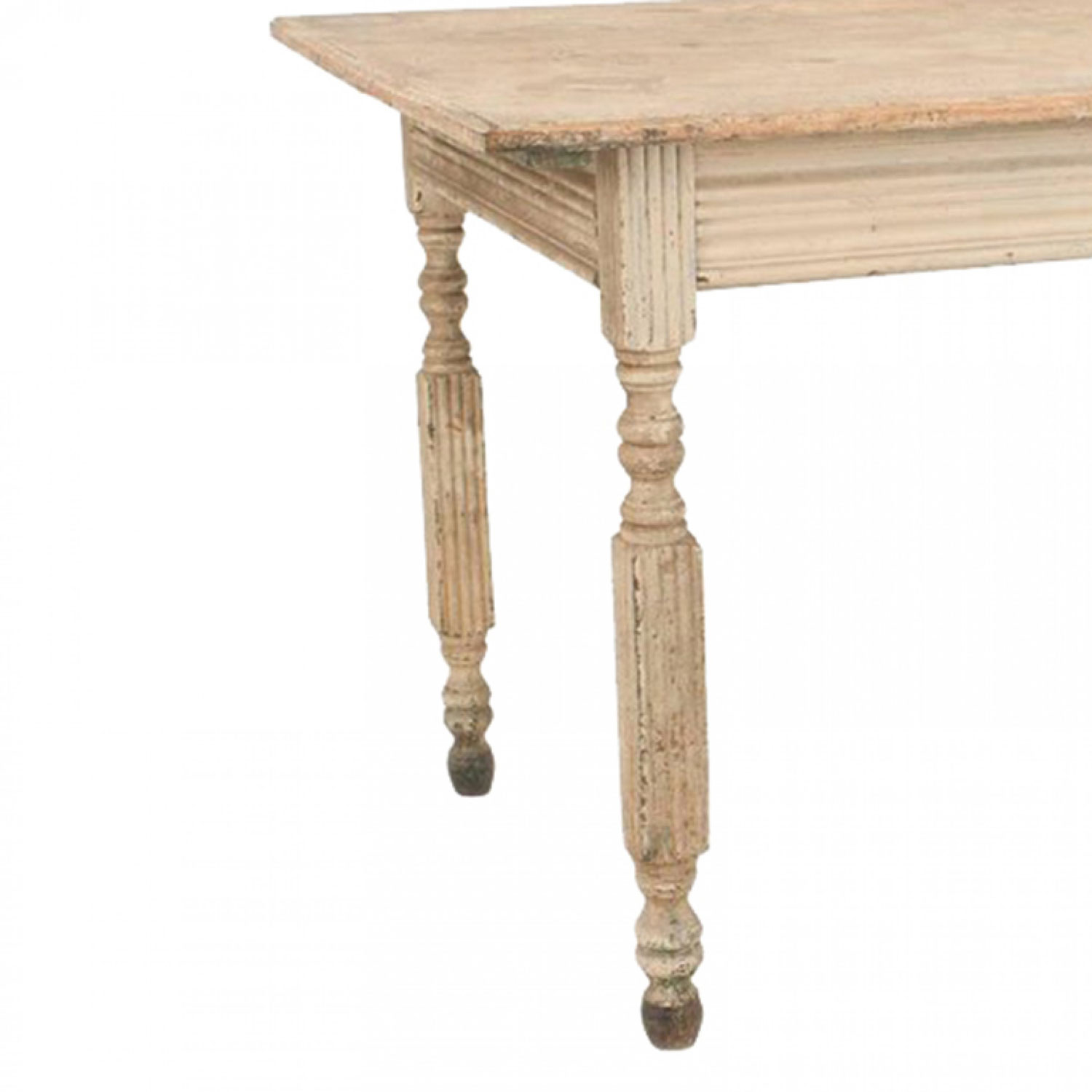 American Country (19th Century) light grey painted dining/work table with an apron and fluted square legs.