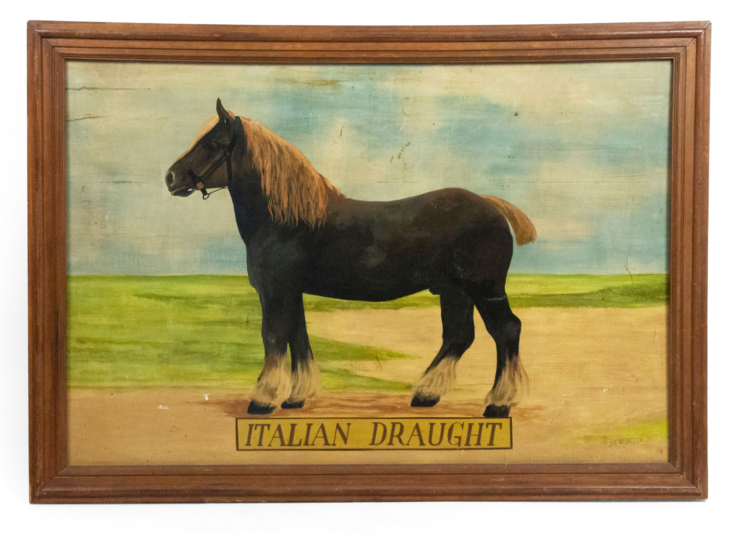 American Country style (20th Cent) oil painting of horse Italian Draught. (signed BENEDETTO).