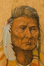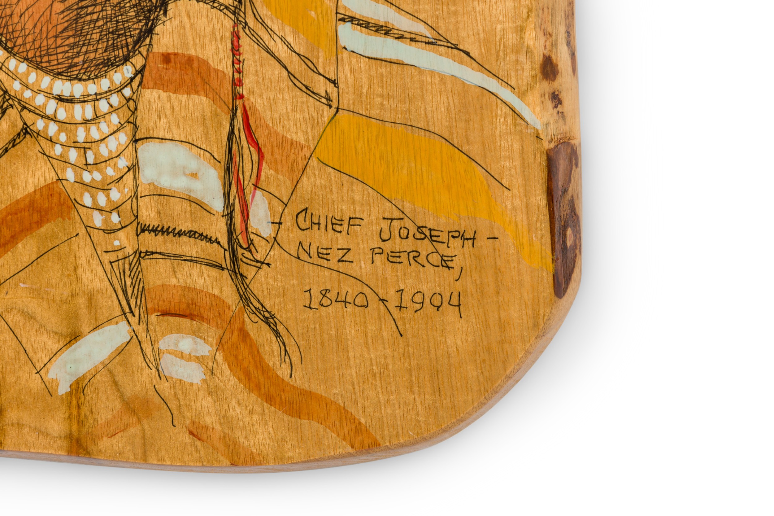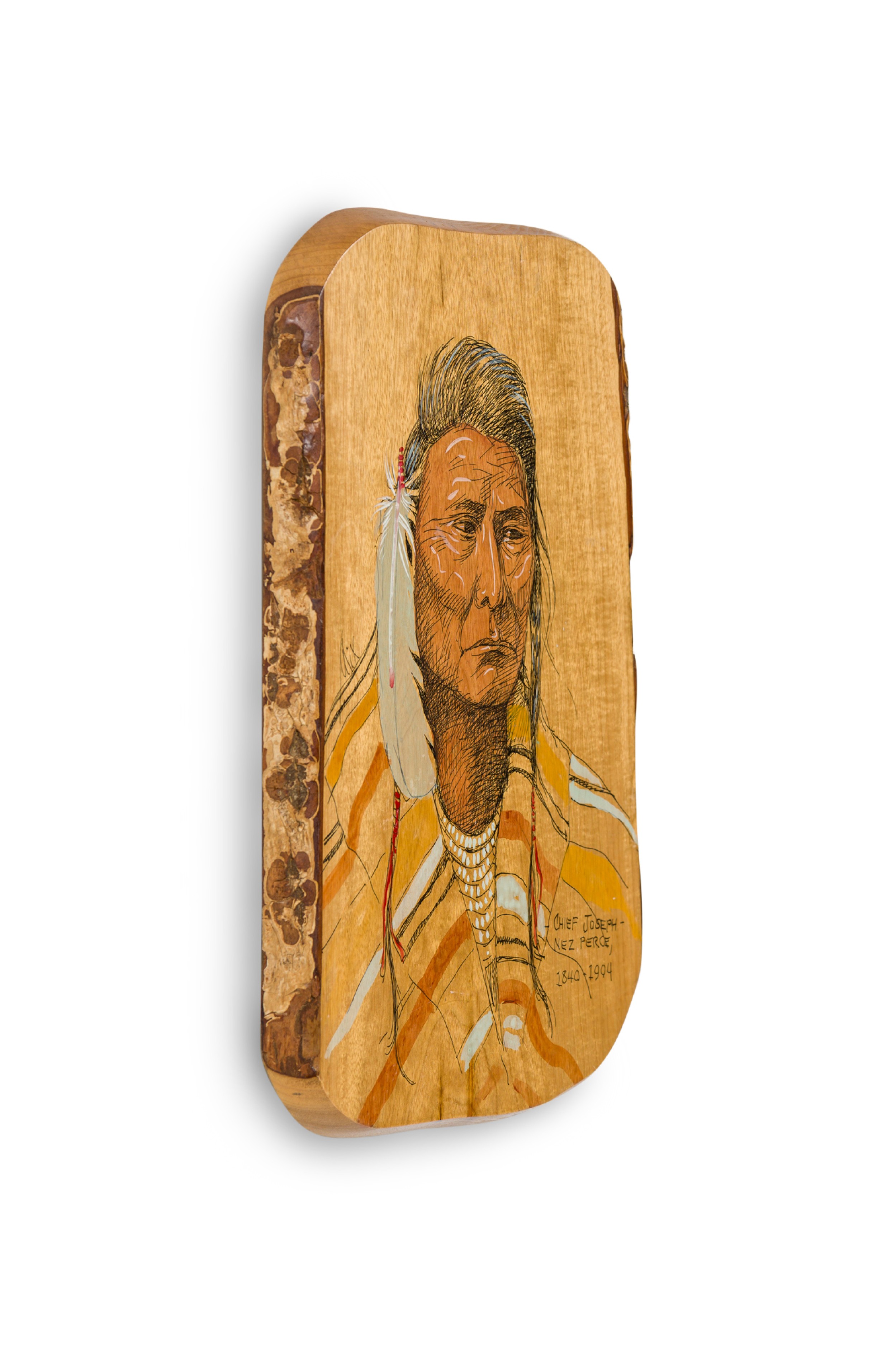 American Country Ink on Myrtlewood Portrait of Chief Joseph of the Nez Perce Tribe