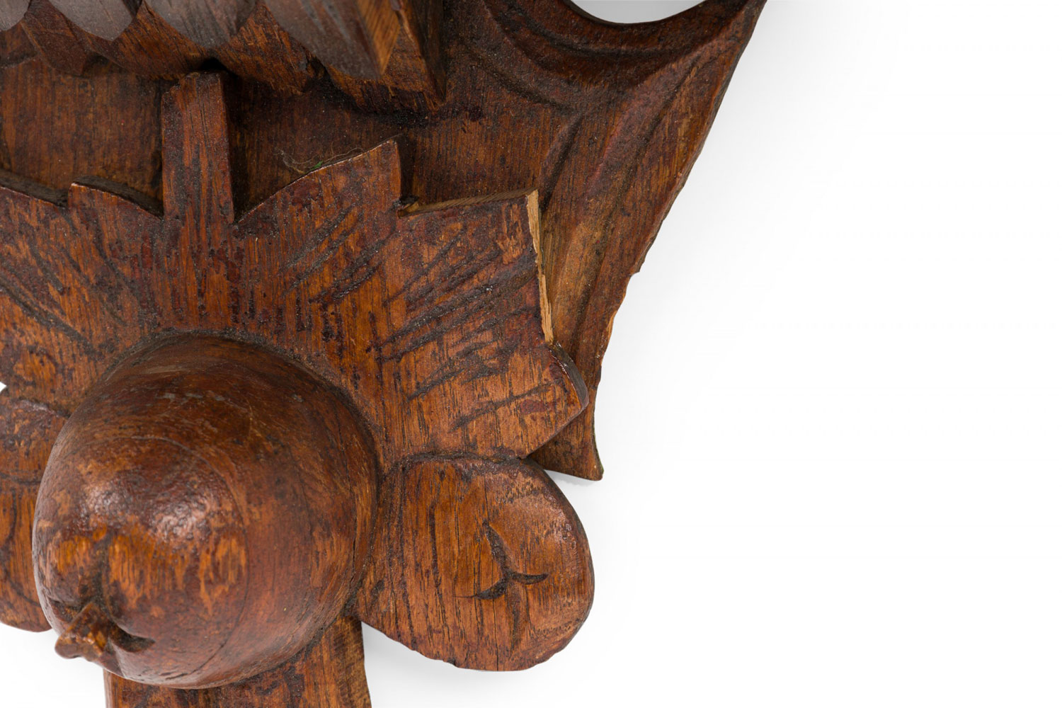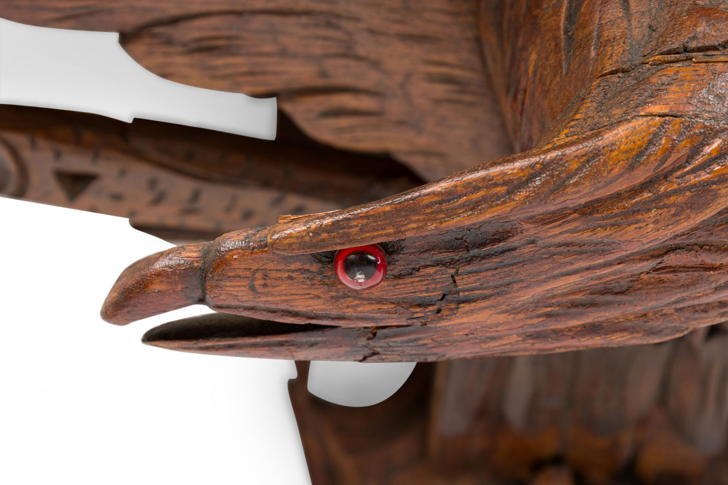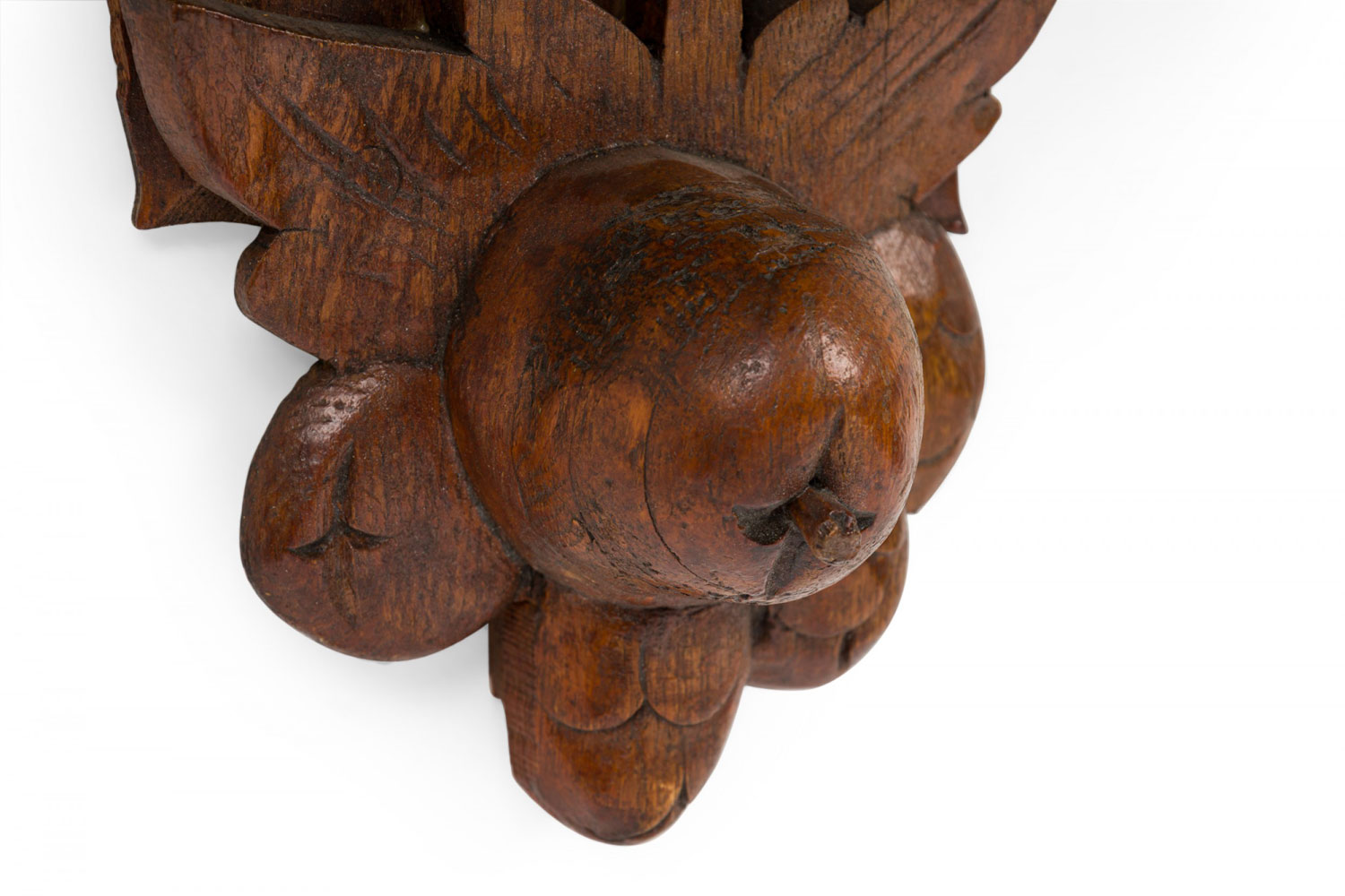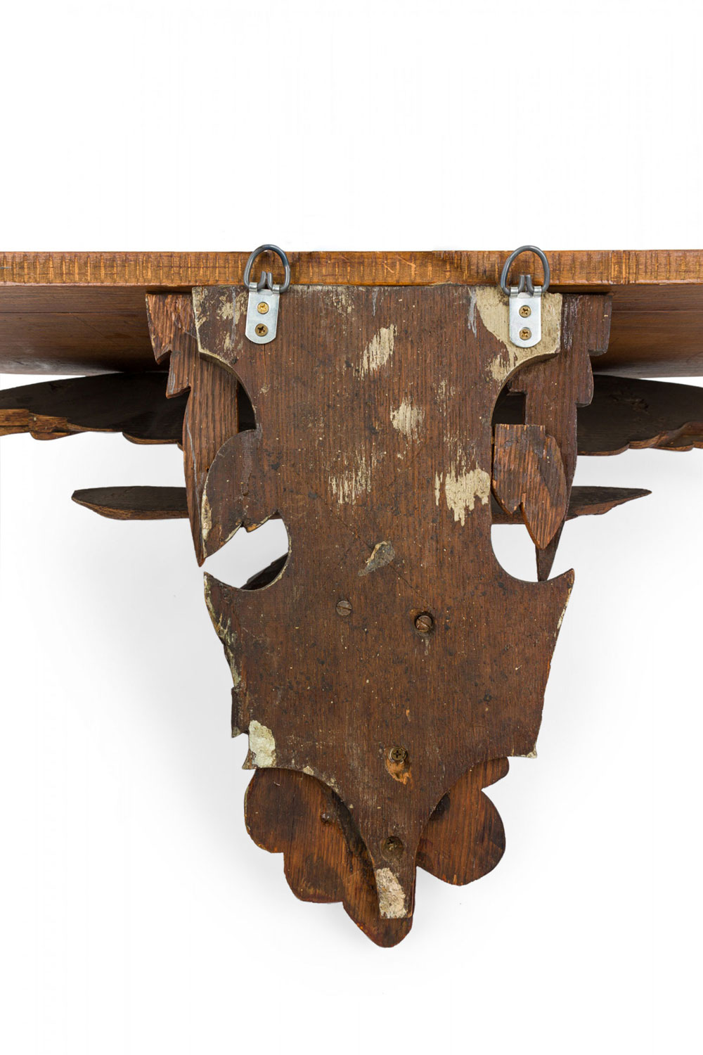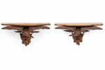 PAIR of American Country pine shaped top wall shelves supported by a carved eagle with spread wings above carved fruit (19/20th Cent)