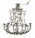 2 American Mid-Century Country Rustic-style large dark metal large 12 arm chandeliers with a shaped form and floral leaf design (PRICED EACH)