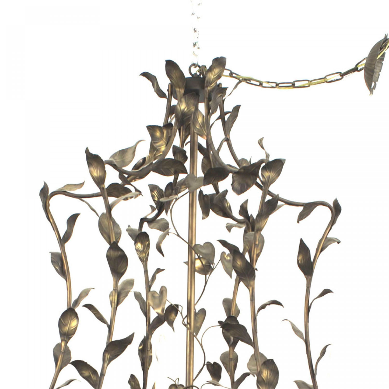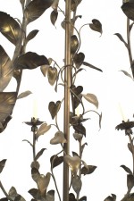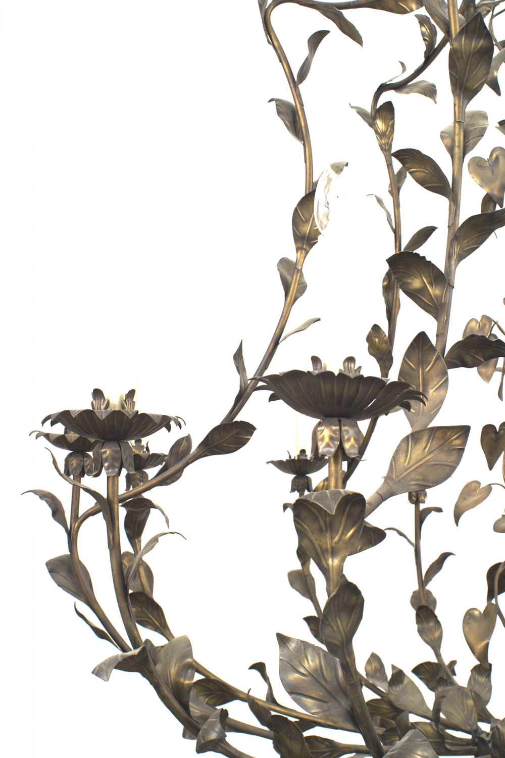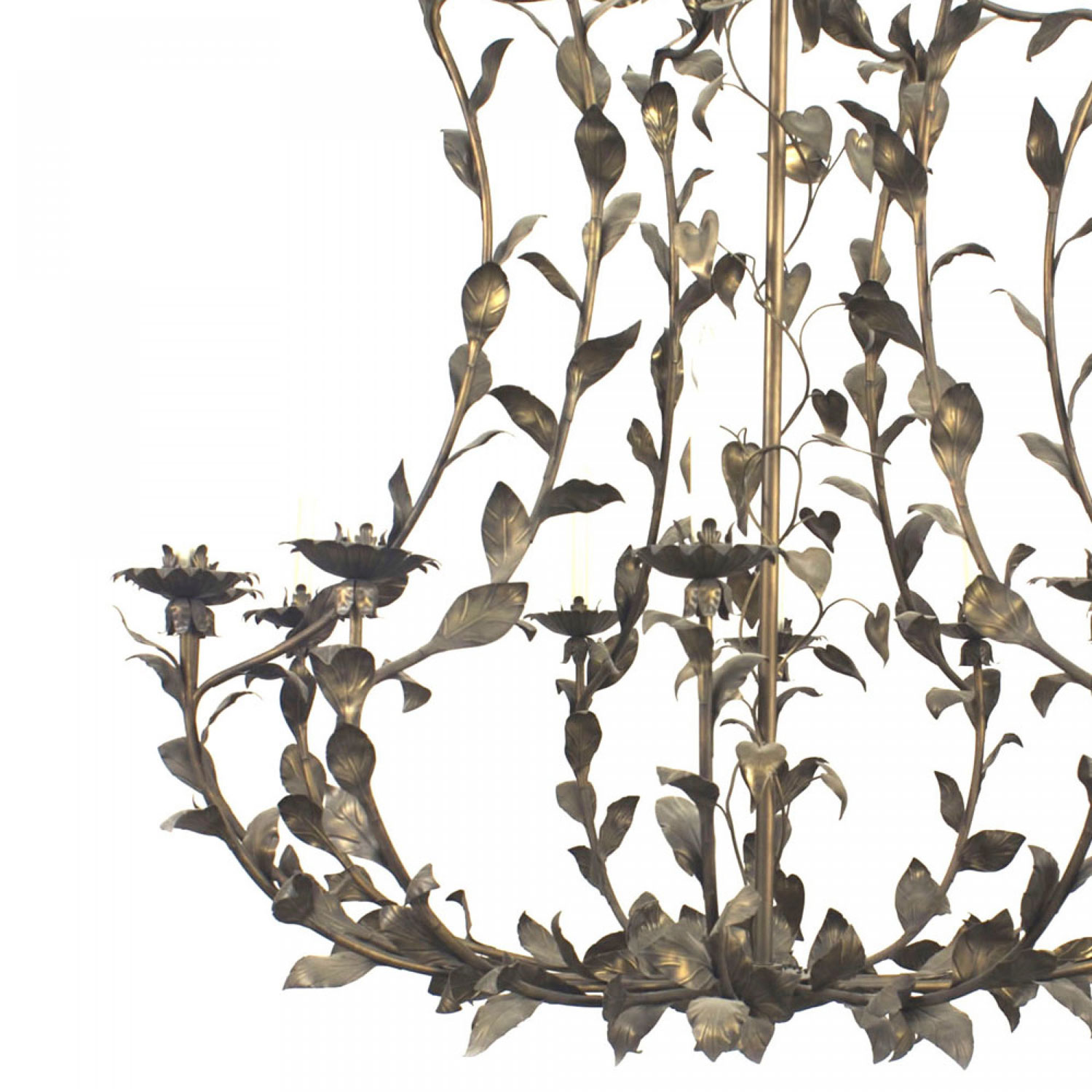 2 American Mid-Century Country Rustic-style large dark metal large 12 arm chandeliers with a shaped form and floral leaf design (PRICED EACH).