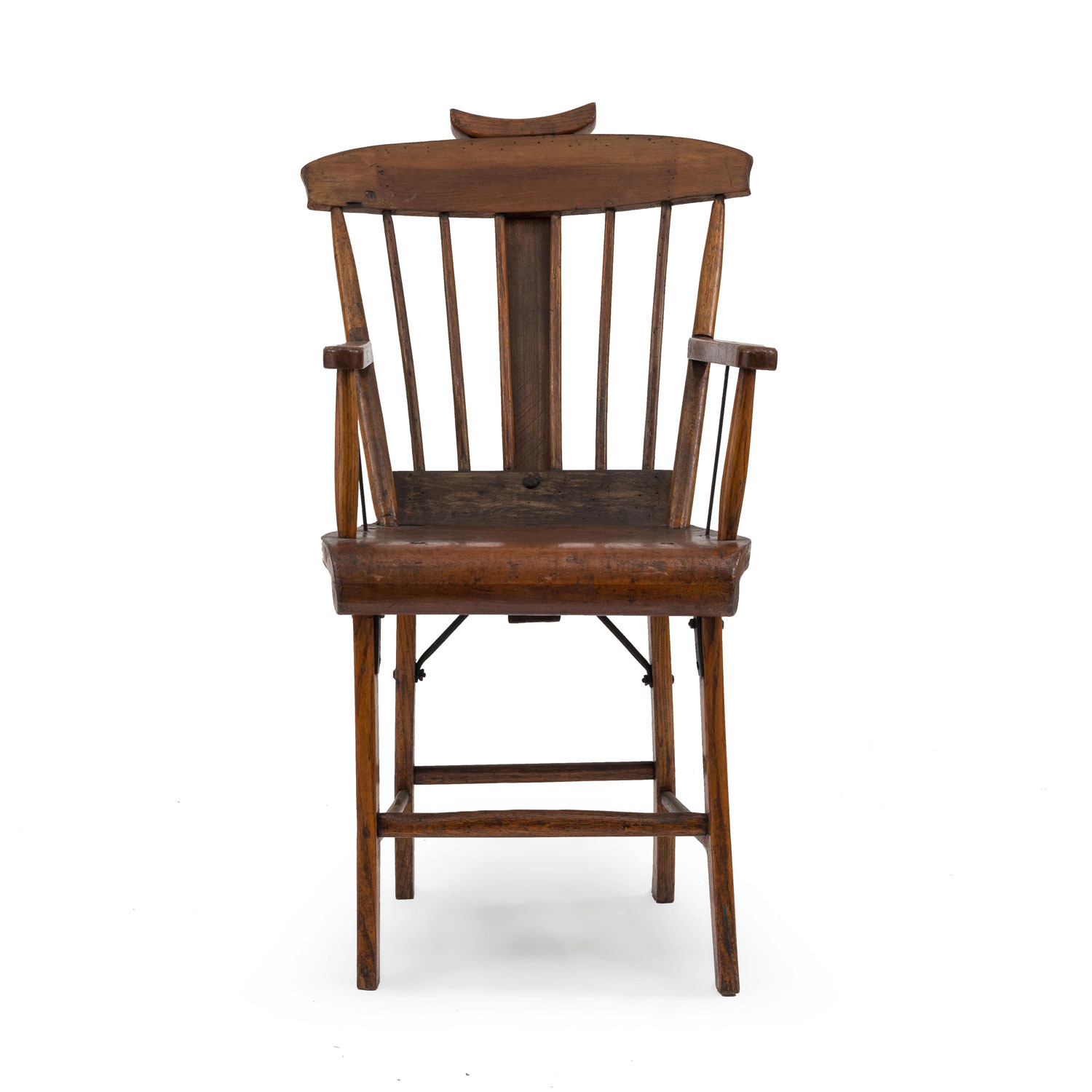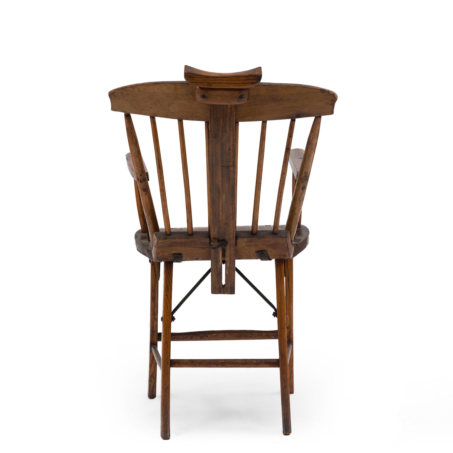 American Country (19th Century) stained pine armchair with spindle back and adjustable headrest..
