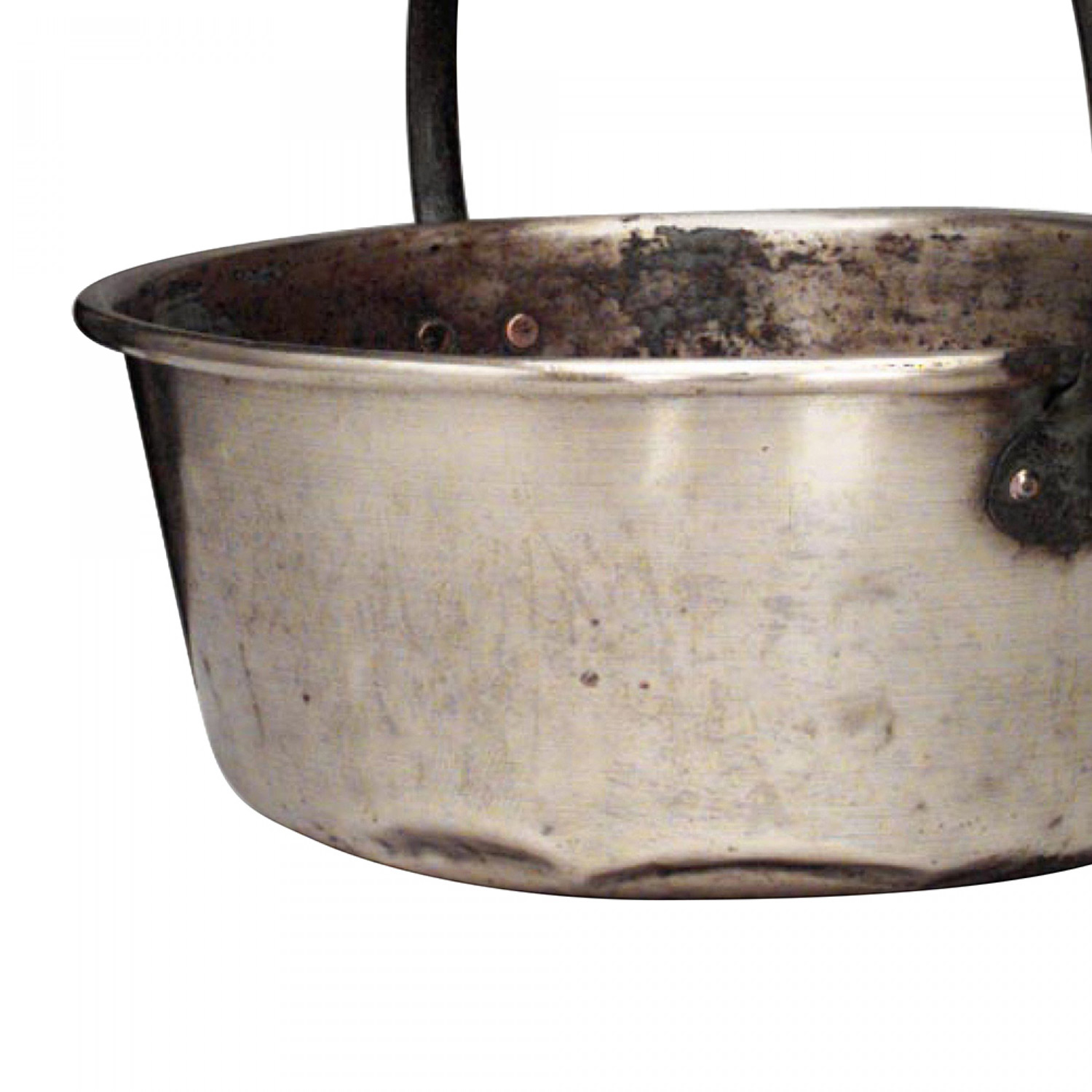 American Country-style (19th Century) brass round cauldron with handle..