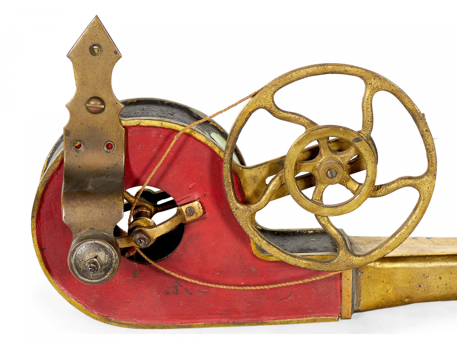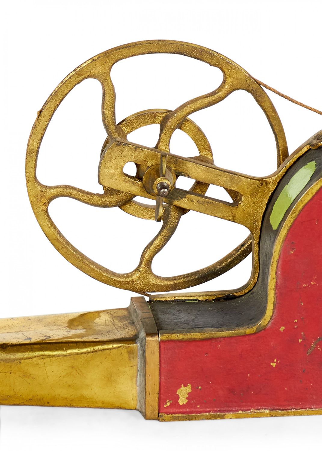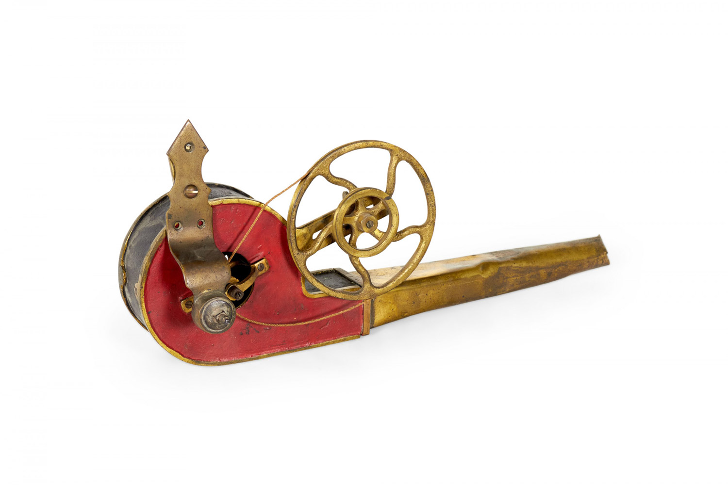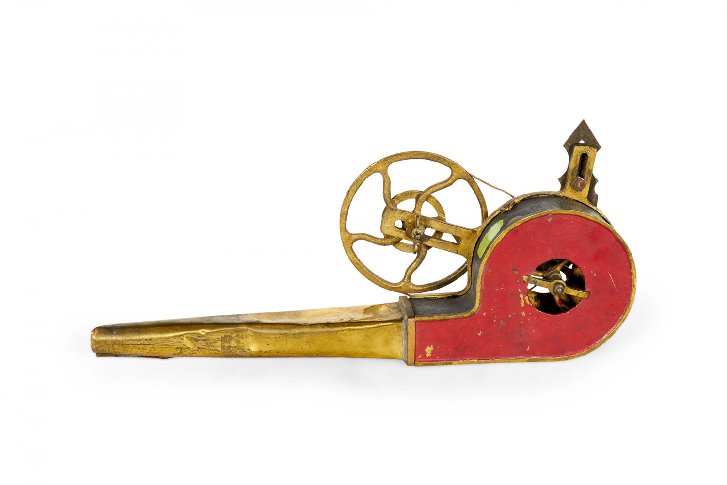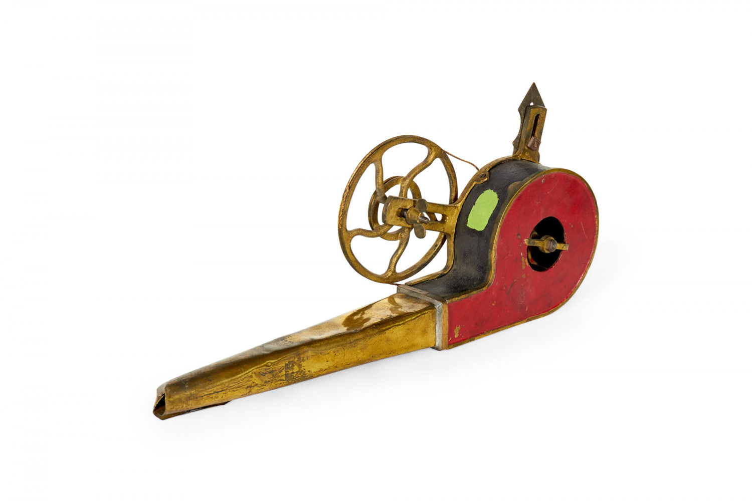 American Country-style (19th Century) brass fireplace bellows with wheel design.