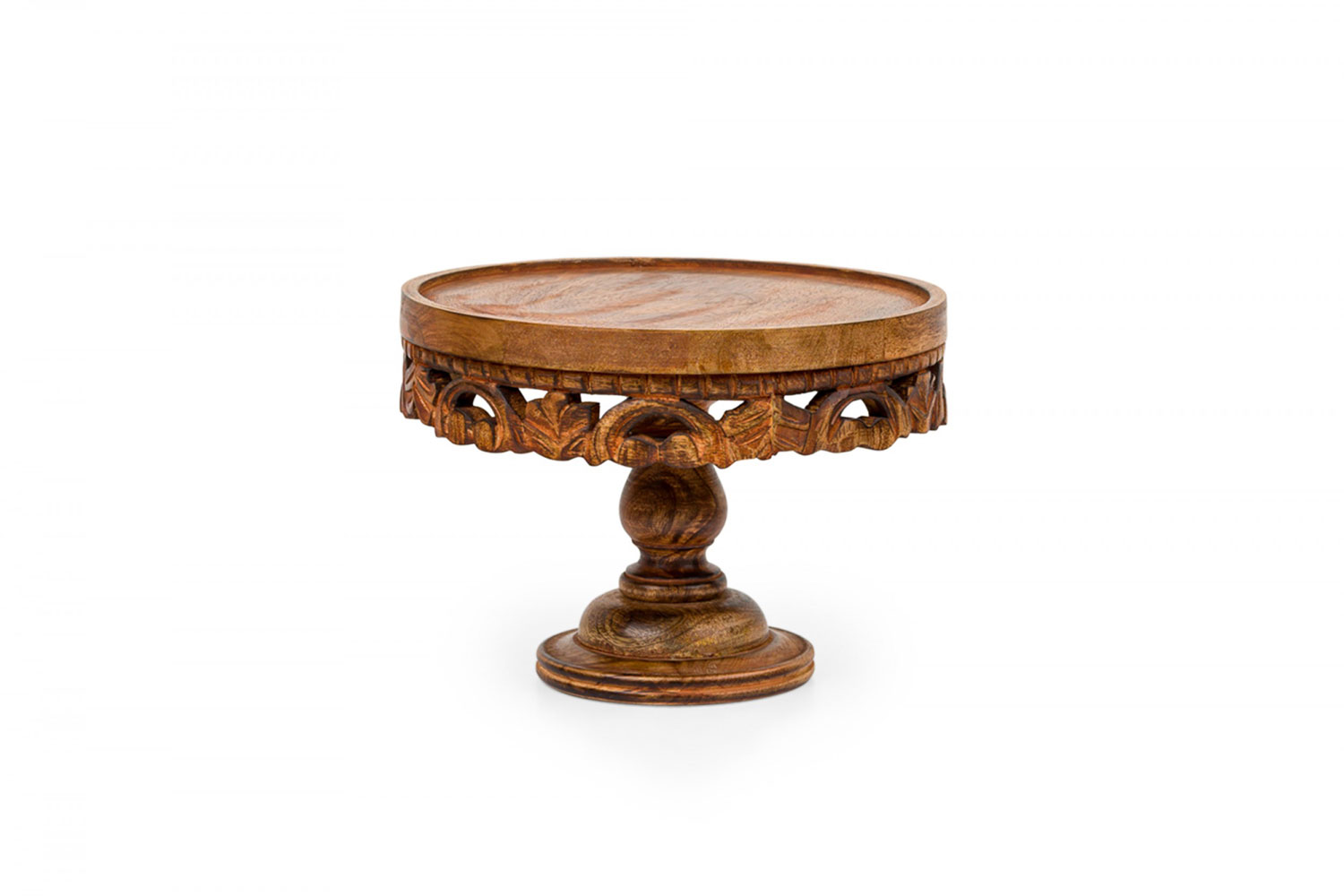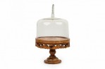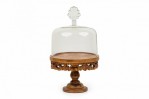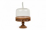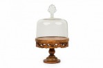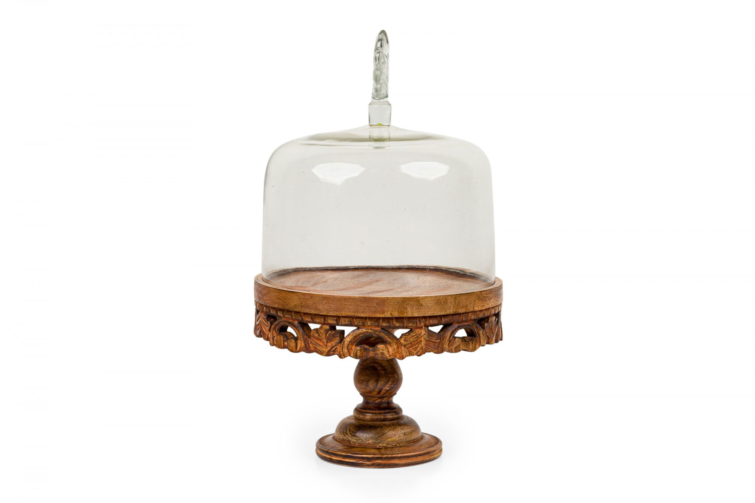 American Country-Style Carved Wood and Glass Cake Plate with Cloche