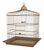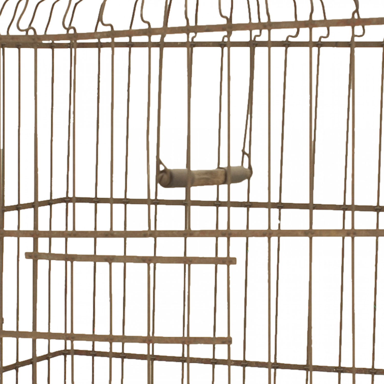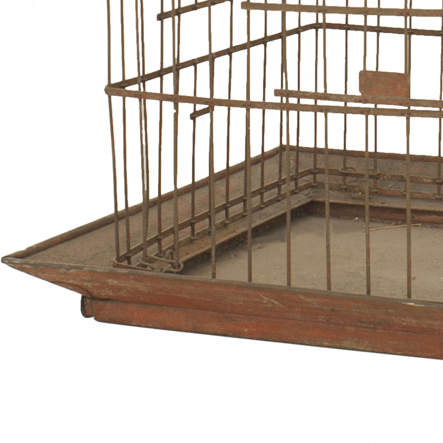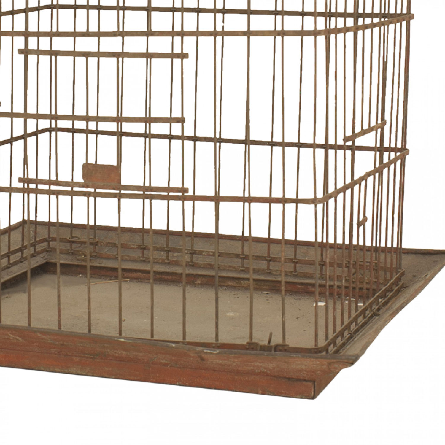 American Country (19/20th Cent) rectangular tole metal and wire bird cage with a bottom tray and center swing