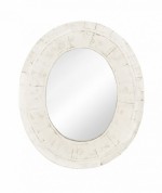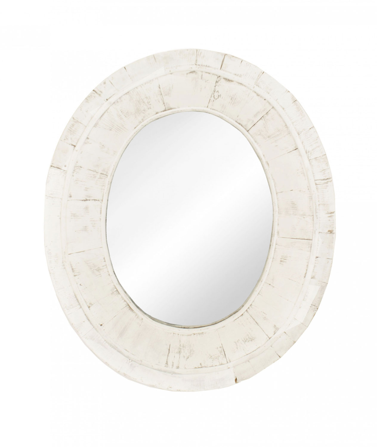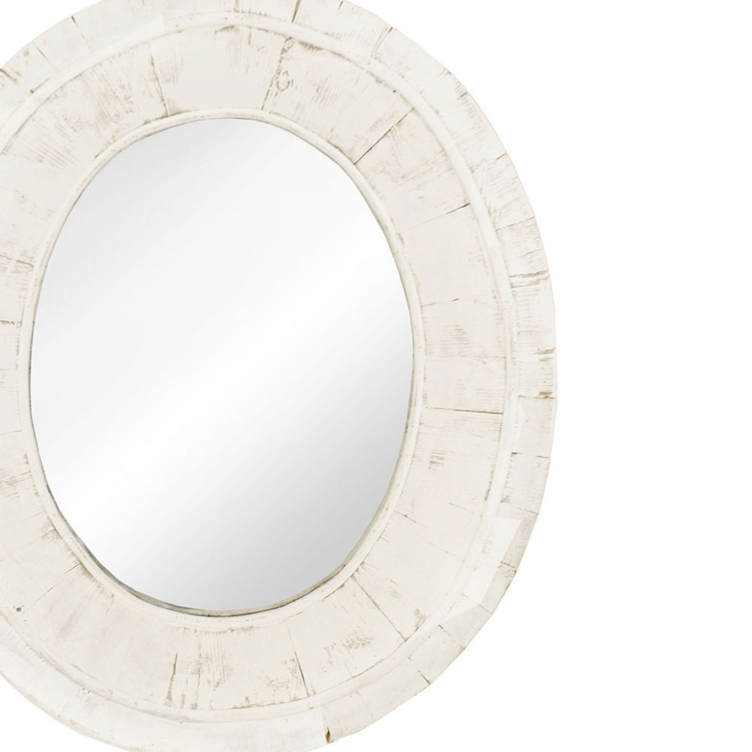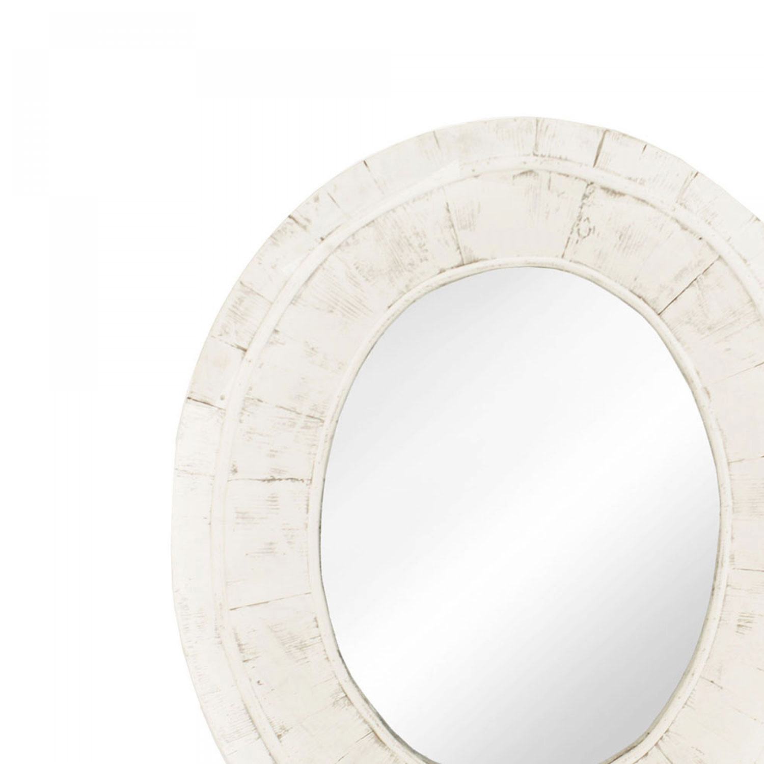 American Country (19/20th Century) oval wall mirror with a thick frame with a weathered white painted finish.