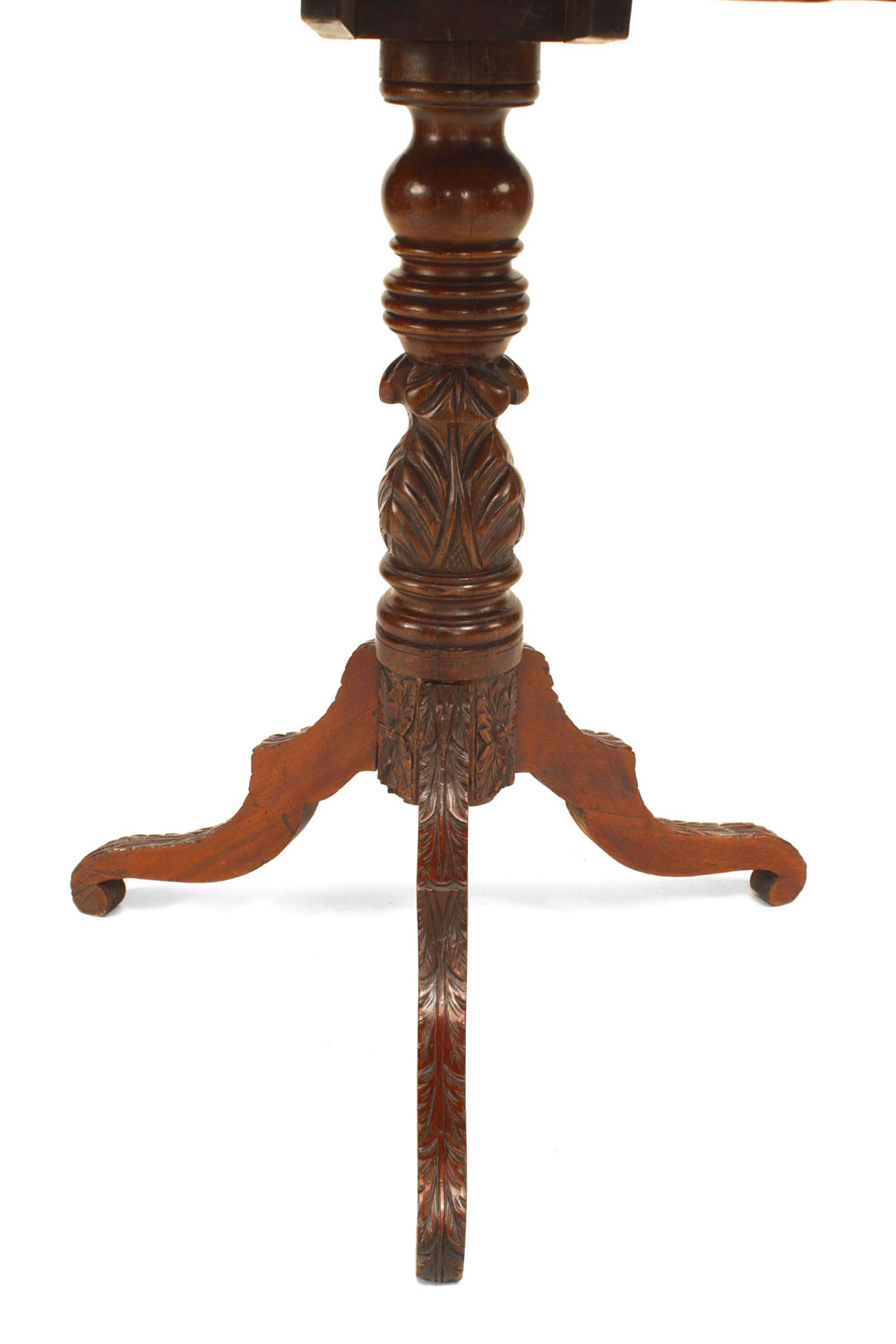 American Empire carved mahogany pedestal base end table with shaped rectangular top.