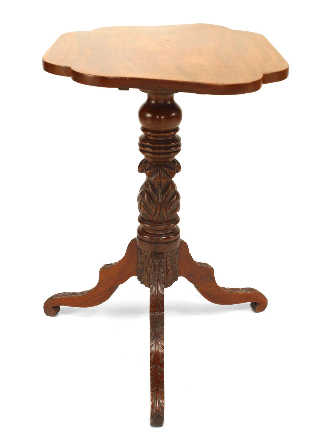 American Empire carved mahogany pedestal base end table with shaped rectangular top