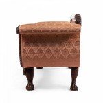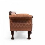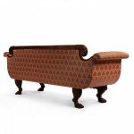 Style: American Materials & Techniques: Mahogany Category: Seating Condition: Back of sofa is slightly loose, repairs to foot and minor loss to frame embellishment. Good; Wear consistent with age and use