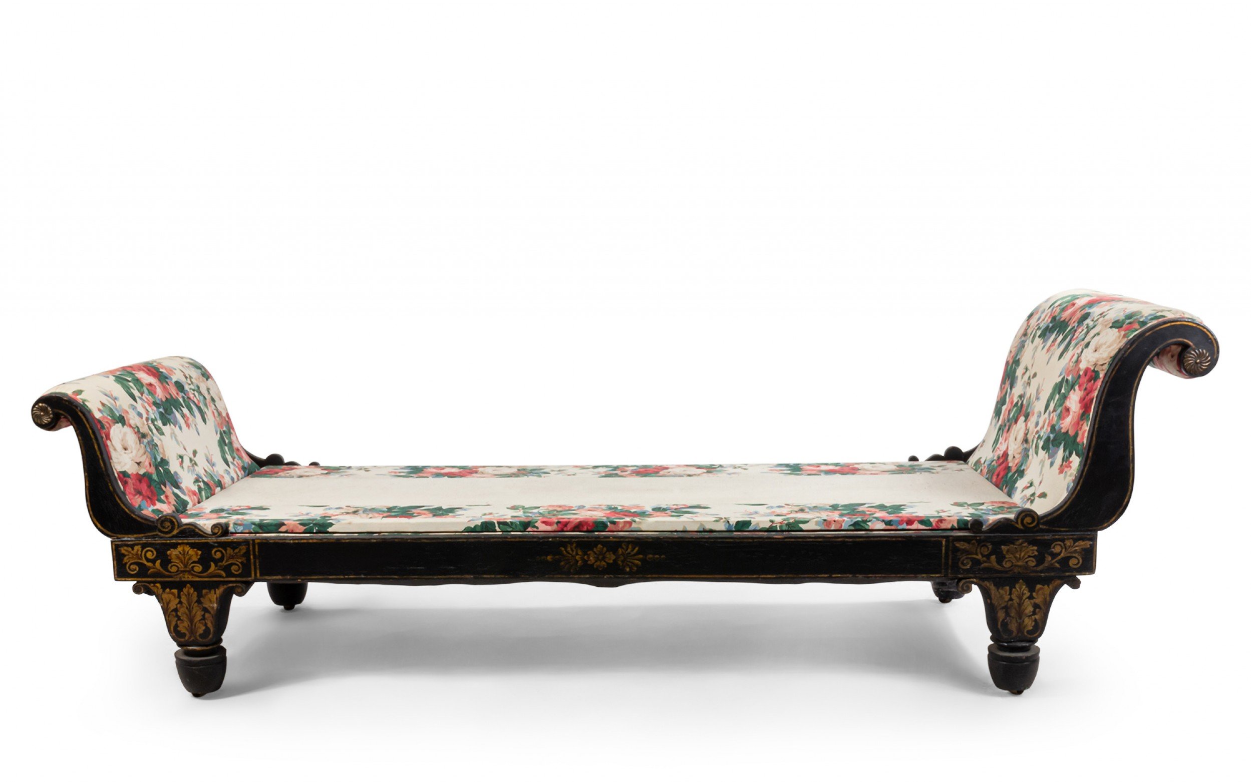 2 American Federal ebonized and gold stencilled daybeds/chaise with sleigh form sides (PRICED EACH)