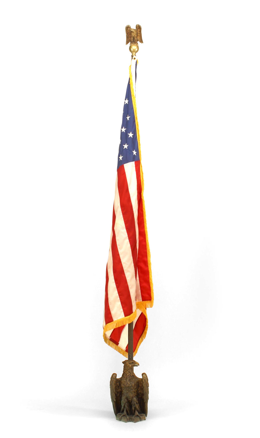 American Federal-style (19/20th Century) bronze eagle base flag pole with eagle finial and flag.