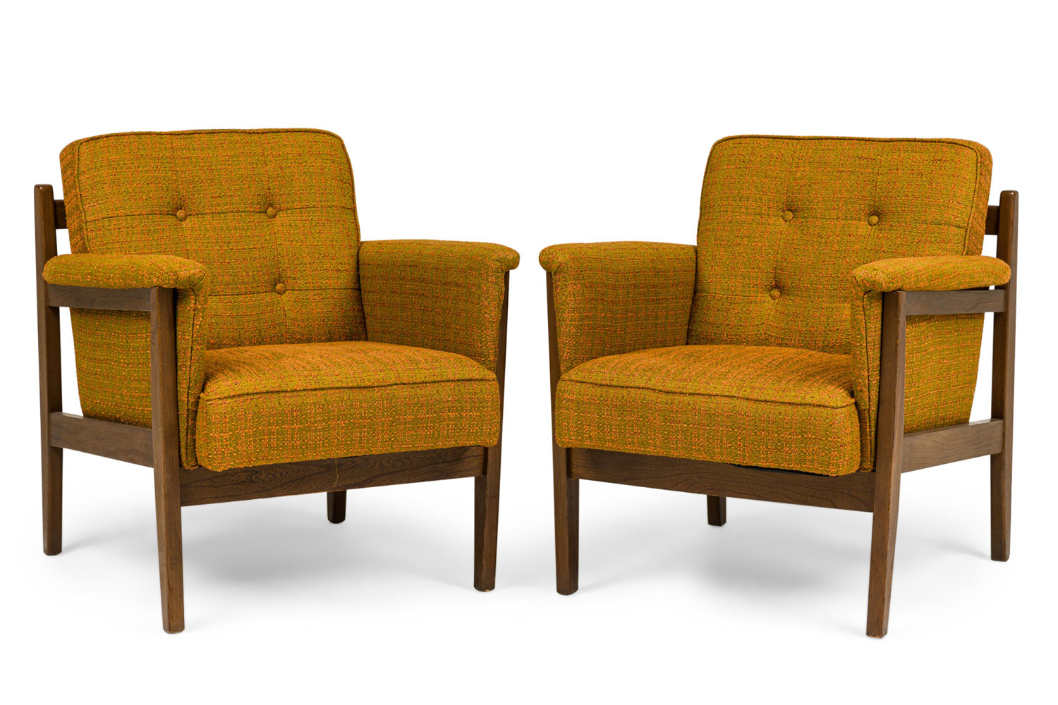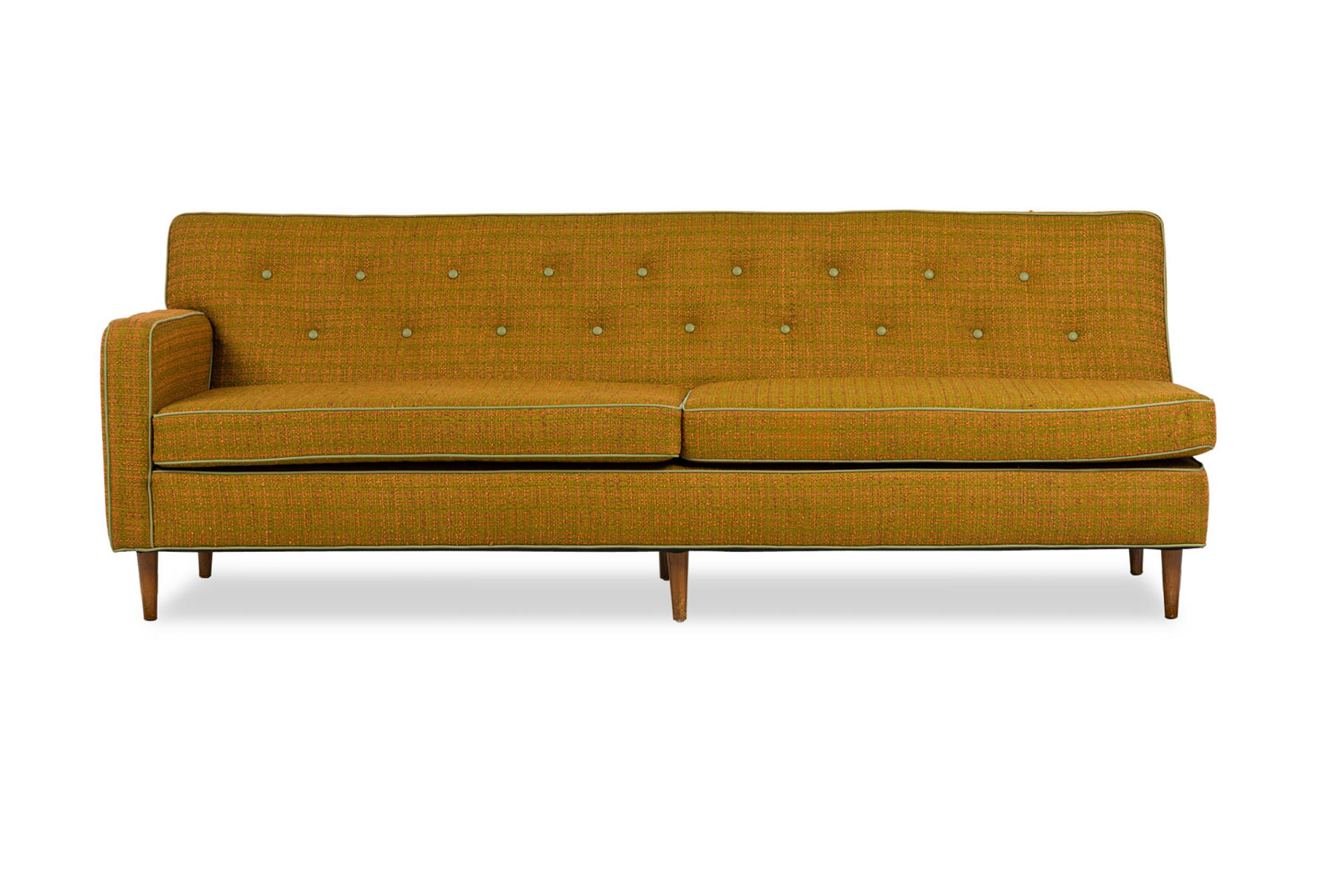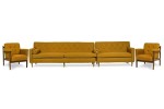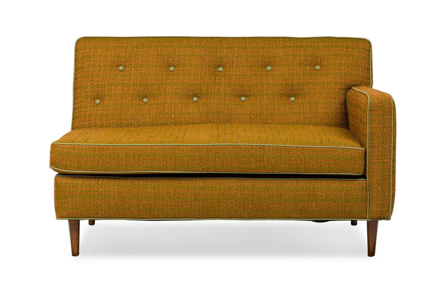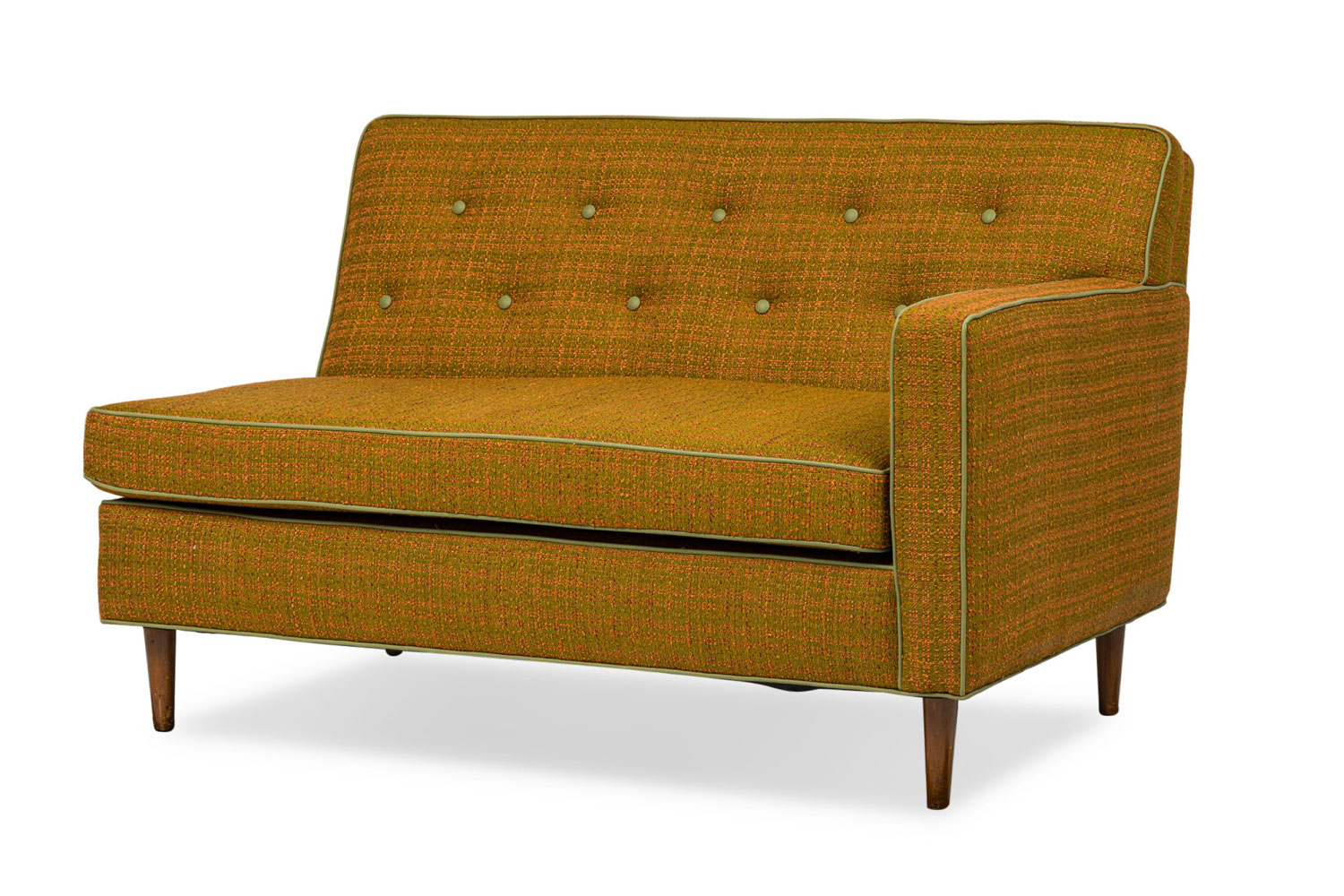 4 Piece American / Danish Mid-Century living room set with a rusty brown tweed upholostery, featuring 2 sectionals (each having 1 arm) and a pair of armchairs..
