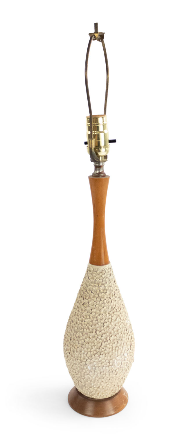 Style: Mid-Century Materials & Techniques: Porcelain, wood Category: Lighting Condition: Ships without a shade