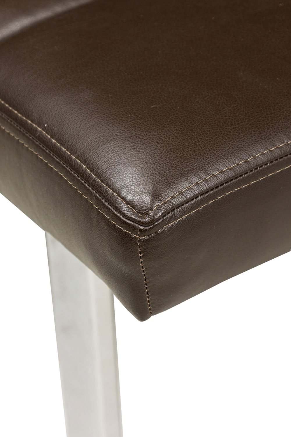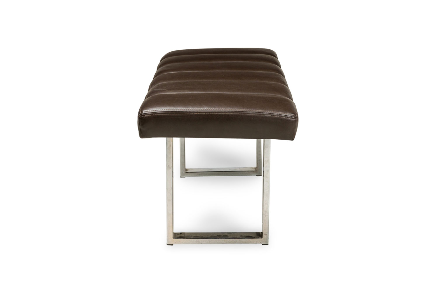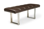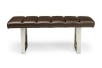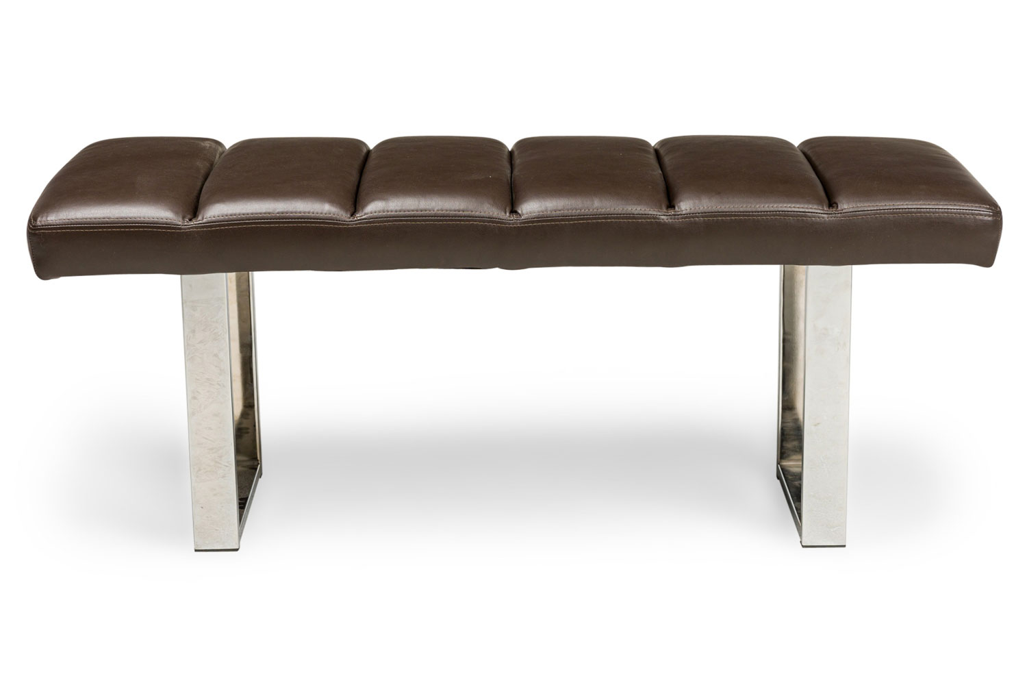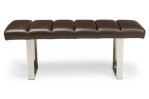 American Mid-Century bench with brown channeled leather seat resting on 2 squared chrome legs