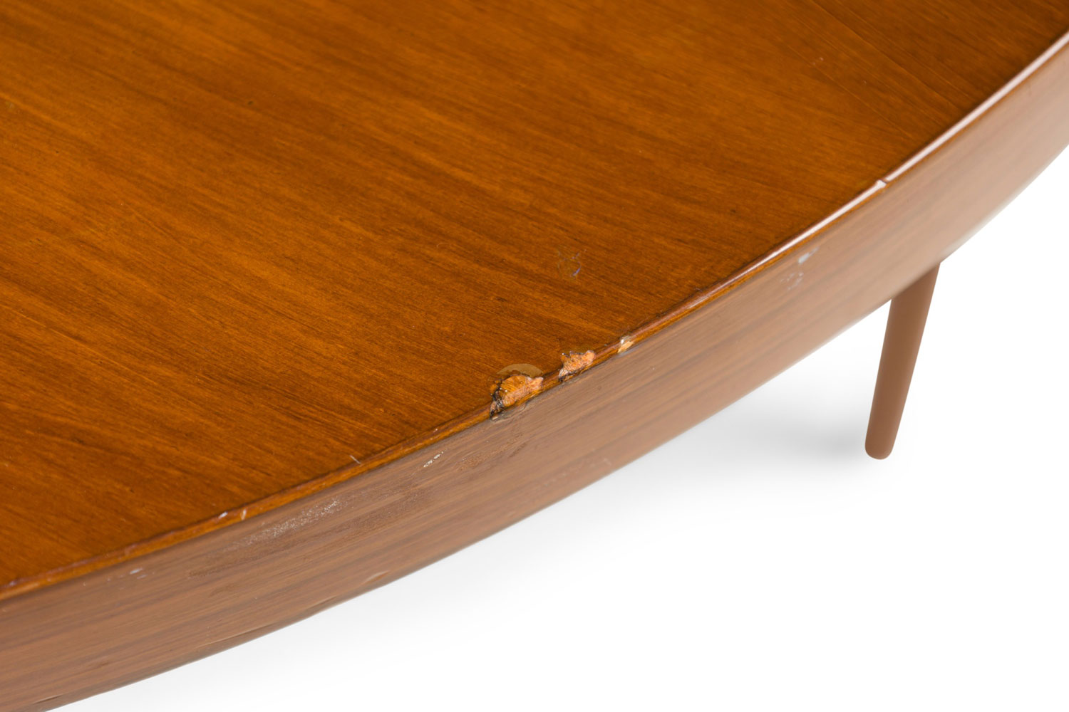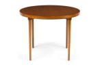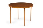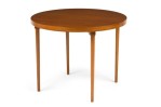 American / Danish style Mid-Century teak round center /breakfast table with 4 tapered turned legs